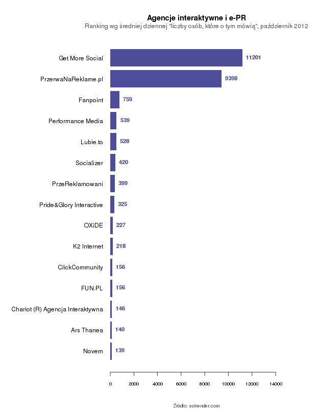 Pod względem „liczby osób, które mówiły o stronach”, najlepiej wypadły fan page’e Get More Social, PrzerwaNaReklame.pl oraz Fanpoint.