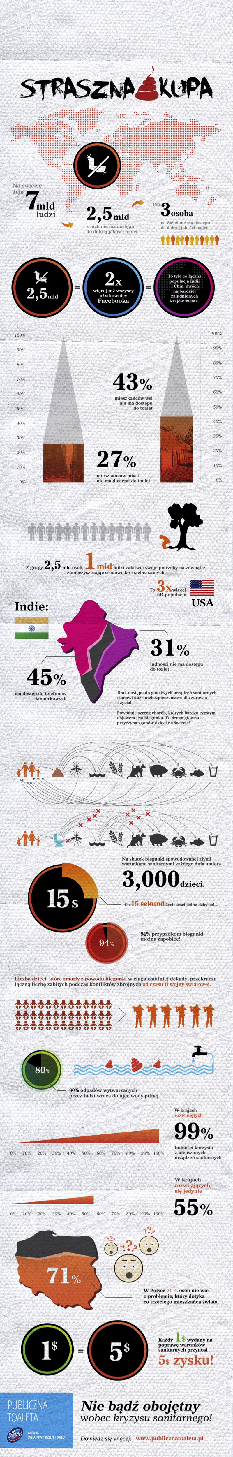 Na potrzeby działań powstała witryna akcji www.publicznatoaleta.pl, na której można znaleźć szczegółowe informacje, w jaki sposób oddać głos poparcia oraz szczegóły na temat kryzysu sanitarnego, niebezpieczeństw związanych z brakiem toalet. Specjalnie z tej okazji została stworzona infografika „Straszna kupa”. Z infografiki można dowiedzieć się m.in. faktów, na temat skali kryzysu sanitarnego i jego wpływu na mieszkańców globu. W ramach działań, do akcji zaproszono także polskich blogerów.