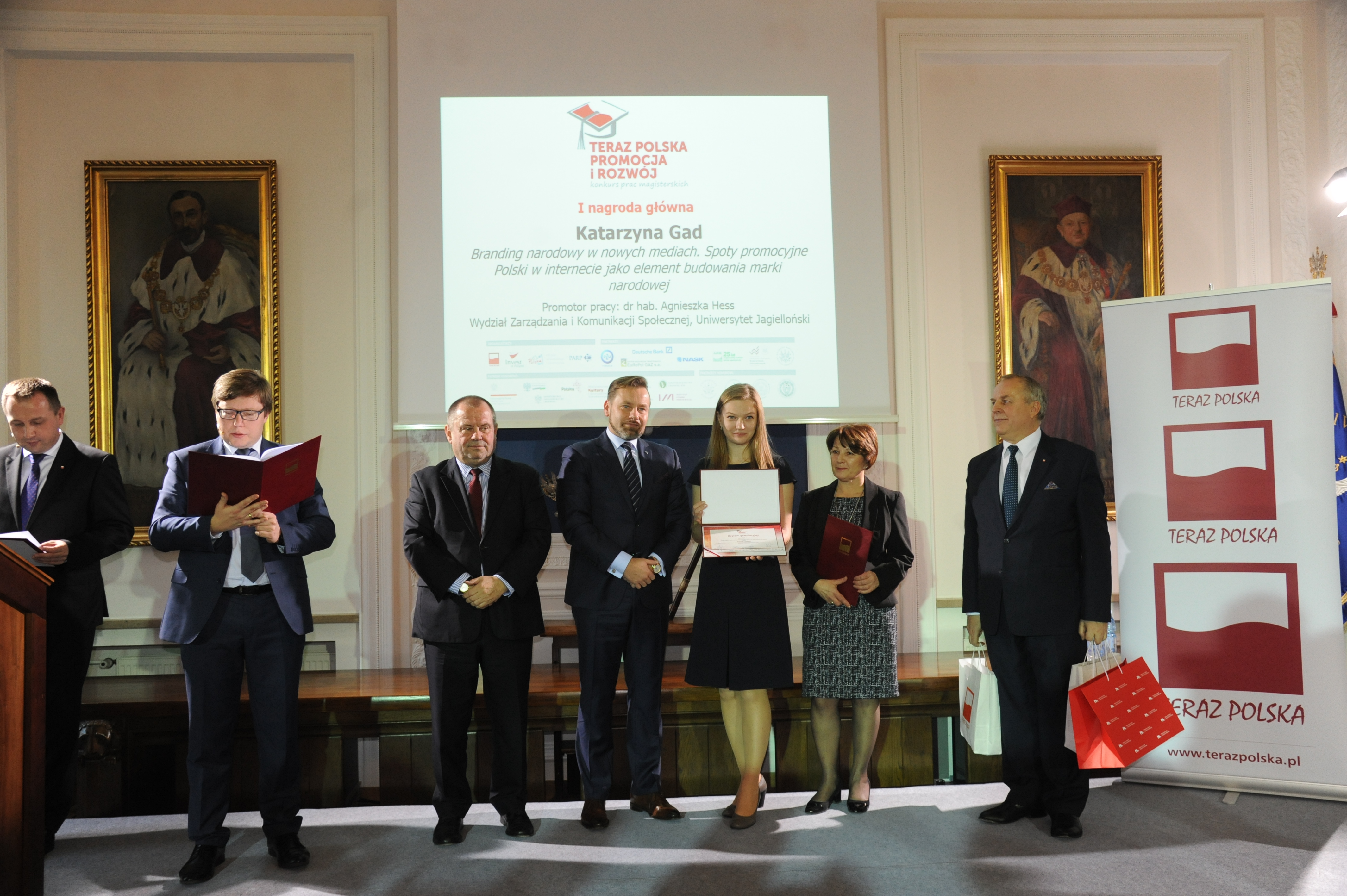 Kapituła Konkursu pod przewodnictwem prof. Alojzego Nowaka, prorektora Uniwersytetu Warszawskiego, przyznała Katarzynie Gad nagrodę główną I stopnia. W swojej pracy „Branding narodowy w nowych mediach. Spoty promocyjne Polski w Internecie jako element budowania marki narodowej” Gad na podstawie badań przeprowadzonych wśród Polaków i obcokrajowców charakteryzuje aktualne postrzeganie polskiej marki narodowej w Internecie.