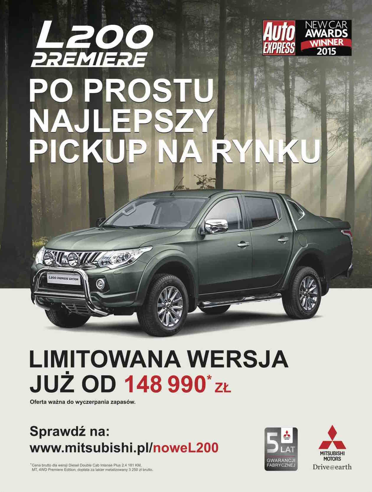 Kampania promująca nowego pickupa Mitsubishi w edycji limitowanej właśnie wystartowała. Potrwa do końca roku, lub do wyczerpania zapasów. Główne hasło akcji brzmi: „L200 Premiere Edition. Po prostu najlepszy pickup na rynku”.
