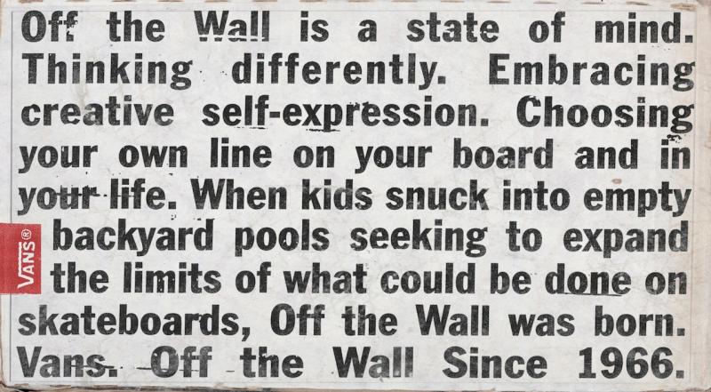 Jedna z reklam, zawierająca opis tego, czym dla marki jest fraza „Off The Wall”.