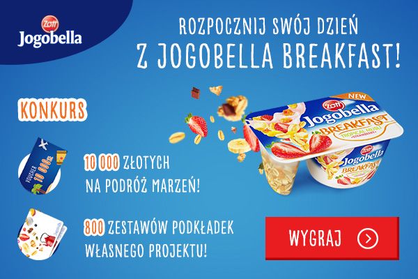 Z tej okazji Jogobella Breakfast zachęca również konsumentów do zaprojektowania własnych, wyjątkowych podkładek śniadaniowych, które urozmaicą śniadanie i ozdobią każdy stół. Konkurs prowadzony jest poprzez stronę www.jogobella.pl. Najciekawsze projekty zostaną nagrodzone – co tydzień wybrani uczestnicy otrzymają zaprojektowane przez siebie zestawy śniadaniowych podkładek. Na koniec zabawy zostanie wręczona nagroda główna: wycieczka o wartości 10 tysięcy złotych.