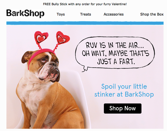 Miłość do zwierząt potrafi być bardzo silna. Wie o tym firma BarkShop, która w zabawny i humorystyczny sposób przypomina swoim subskrybentom, że w Walentynki mogą rozpieszczać swoich pupili produktami dostępnymi w ich sklepie.