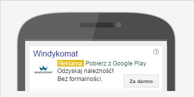 Przykład reklamy aplikacji wyświetlanej w mobilnej wyszukiwarce Google