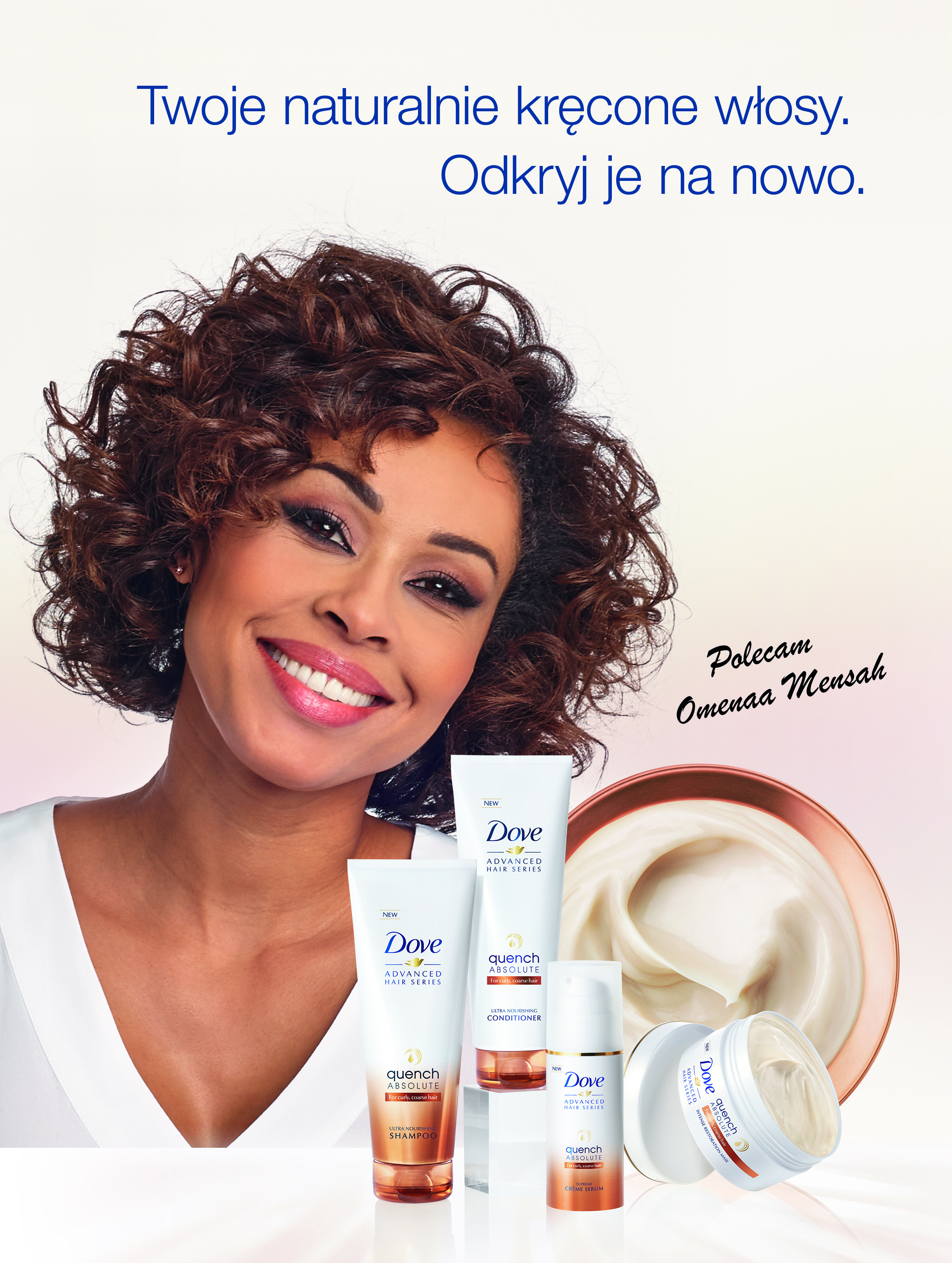 – To wyjątkowe linie kosmetyków o zaawansowanych formułach, które zapewniają włosom kompleksową i ukierunkowaną pielęgnację. Taka też jest nasza najnowsza propozycja – seria Dove Quench Absolute, dedykowana pielęgnacji włosów naturalnie falowanych i kręconych. Do współpracy przy tym projekcie zaprosiliśmy Omenę Mensah”.
