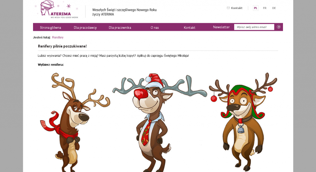 Wyciągając prezenty spod choinki warto pamiętać, że Święty Mikołaj nie zdołałby ich dostarczyć na czas, gdyby nie renifery zaprzęgowe zrekrutowanie przez agencję zatrudnienia ATERIMA (case study akcji)