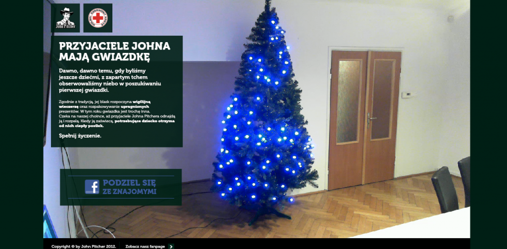 Każda kartka świąteczna przesłana przez agencję John Pitcher umożliwia zapalenie lampki na choince – jedna zapalona lampka to trzy posiłki dla dzieci w ramach akcji Polski Czerwony Krzyż (PCK).