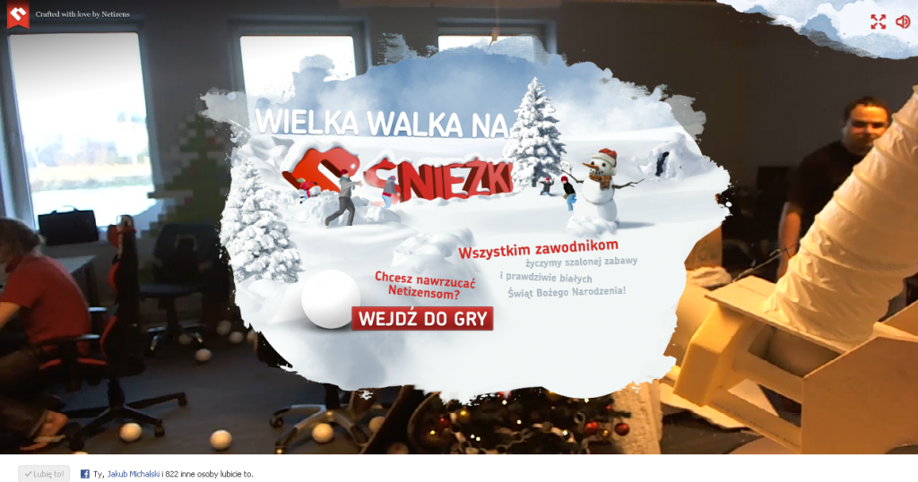 “Wielką walkę na śnieżki” przygotowała agencja Netizens Peppermint. Wystarczy wejść na stronę interaktywnej Kartki Świątecznej 2012, by sterować działkiem, wymierzyć i z każdego miejsca na ziemi oddawać strzały kulkami w „specjalne elementy wystroju wnętrz” lub pracowników katowickiej agencji. Najwięcej punktów można otrzymać za trafienie prezesa agencji Witolda Kempy. Śnieżkowa batalia nie jest jednostronna – pracownicy Netizensa mogą trafiać w wirtualnego miotacza śnieżek rzucając w kamerę transmitującą obraz z agencji. Na stronie znajduje się licznik (netizens vs reszta świata).