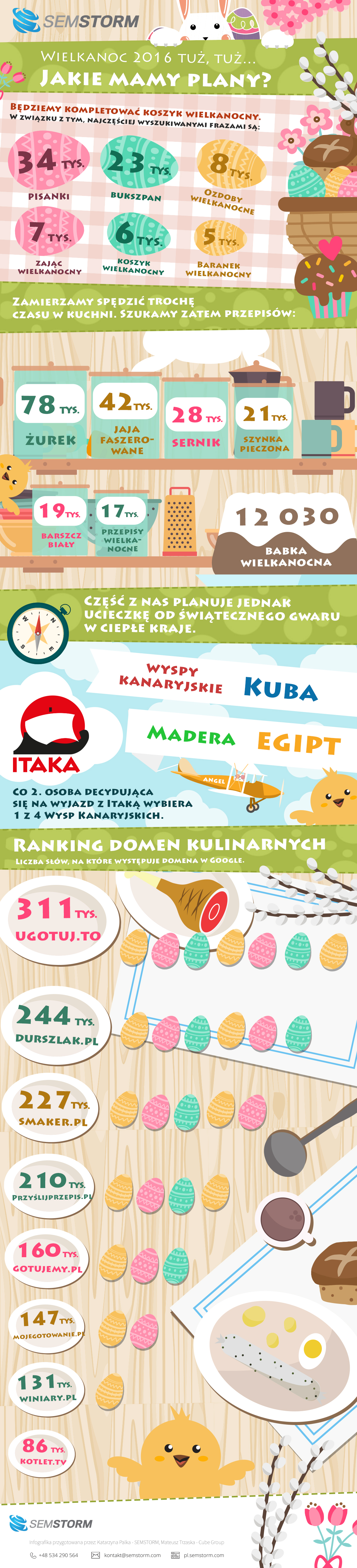 Prezentowane dane dotyczące naszych wyszukiwań wielkanocnych pochodzą z analogicznego okresu w zeszłym roku, natomiast dane dotyczące rankingu domen – z lutego br.