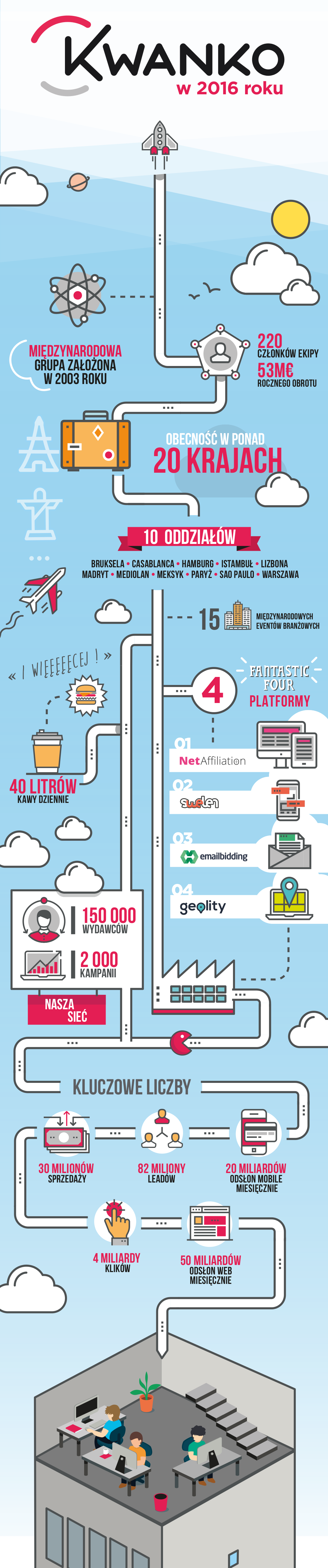 Misja KWANKO polega na budowaniu wzajemnych relacji między reklamodawcami, którzy pragną dotrzeć do nowych klientów, a wydawcami, których celem jest monetyzowanie swojej powierzchni reklamowej. KWANKO specjalizuje się w performance marketingu i dociera do użytkowników poprzez reklamę internetową, mobilną oraz emailing RTB. Nowa identyfikacja Grupy tylko utwierdza w przekonaniu o tym, że jest to firma nowoczesna w duchu start-upu, która łączy profesjonalizm oraz wysoką jakość usług z rozwiniętą technologią i wyróżnia się na tle innych.