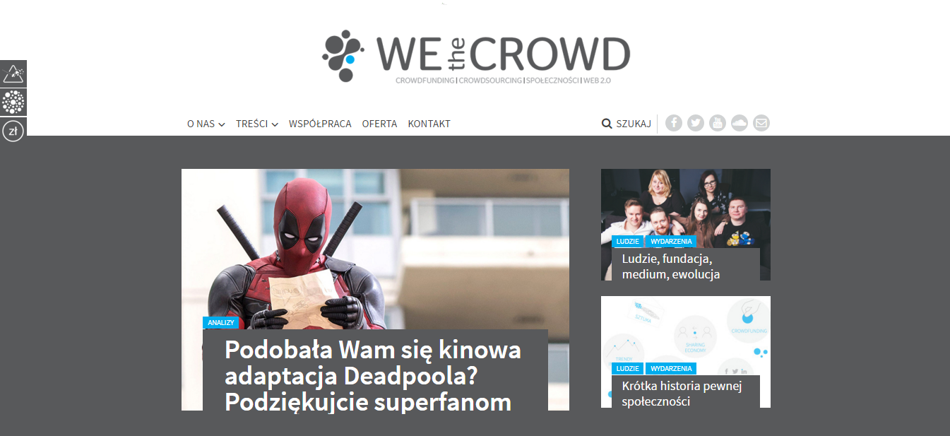 Środowisko, fundacja i redakcja WE the CROWD to pierwsze w Polsce medium zajmujące się tematyką cyfrowych społeczności i internetowej kultury partycypacji oraz ich wpływu na dzisiejsze społeczeństwo, gospodarkę i kulturę.