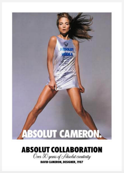 Absolut Cameron – tak brzmiał podpis pod reklamą marki, kiedy fotograf Steve Bronstein zrobił zdjęcia modelce Rachel Williams w unikalnej sukience zaprojektowanej przez Camerona. Kreacja ta stała się na tyle słynna i popularna, że producent wódki podjął decyzję o kontynuowaniu współpracy ze światem mody. W ten sposób narodził się projekt ABSOLUT FASHION. Do współpracy zaproszono bardziej i mniej znane postaci świata mody, by zaprojektowali wszystko, począwszy od krawatów, a skończywszy na sukienkach. Ubiory i akcesoria inspirowane kształtem oraz formą butelki Absolut tworzyli znani kreatorzy, jak Gianni Versace, Tom Ford czy Jean Paul Gaultier, a także Polka – Joanna Klimas.