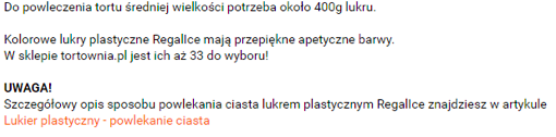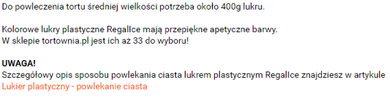 Z kolei sklep z dekoracjami cukierniczymi i akcesoriami do pieczenia oraz zdobienia edukuje swoich Klientów, zapewniając materiały dotyczące m.in. tego w jaki sposób powlekać ciasto lukrem plastycznym lub jak używać pieczątki do ciastek by uzyskać jak najlepszy efekt.