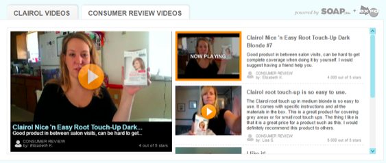 Soap.com oprócz tradycyjnych recenzji na kartach produktów umieścił także opinie swoich Klientek w postaci przygotowanych przez nie filmików.
