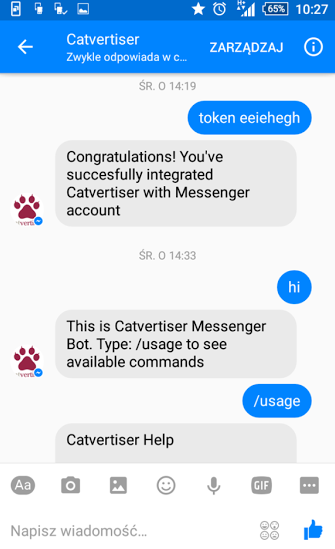 Z tej możliwości skorzystali od razu twórcy Catvertisera, umożliwiając swoim użytkownikom zarządzanie kampaniami przez Messengera.