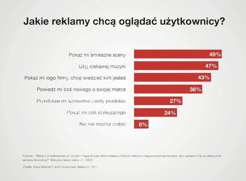 Użytkownicy nie są aż tak wymagającymi konsumentami. Badania przeprowadzone przez Ipsos MediaCT i Innerscope Research w 2011 roku pokazały, że Internauci po prostu lubią się śmiać.