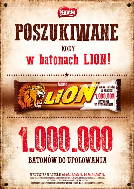 Loteria rozpoczęła się 5 grudnia i potrwa do 30 kwietnia 2017 roku lub do wyczerpania zapasów z puli produktów promocyjnych z kodami uprawniającymi do odebrania nagrody, jeśli nastąpi to przed upływem wyżej wymienionego terminu. Do wygrania jest milion batonów LION standard 42 g.
