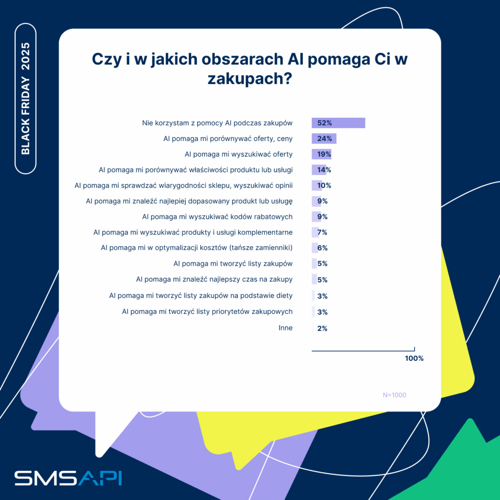 Jednocześnie ponad połowa (52%) ankietowanych wciąż nie korzysta z AI podczas zakupów.