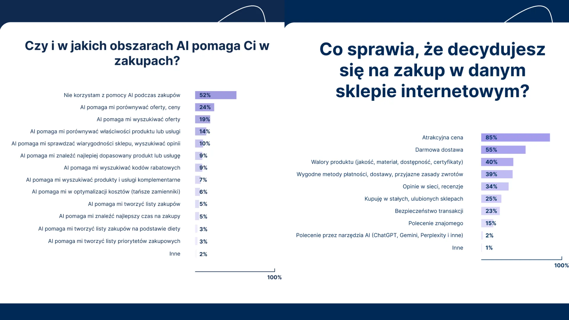 Jednocześnie ponad połowa (52%) ankietowanych wciąż nie korzysta z AI podczas zakupów.