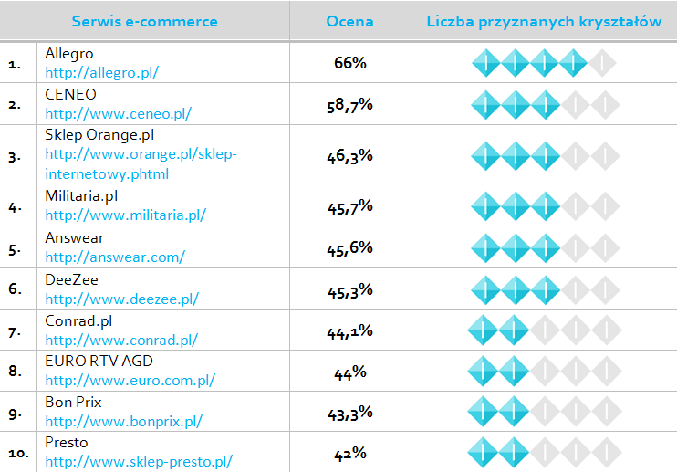 Allegro, CENEO, sklep Orange.pl, militaria.pl i Answear.com to czołówka polskich stron e-commerce wg raportu Kryształy Symetrii.
