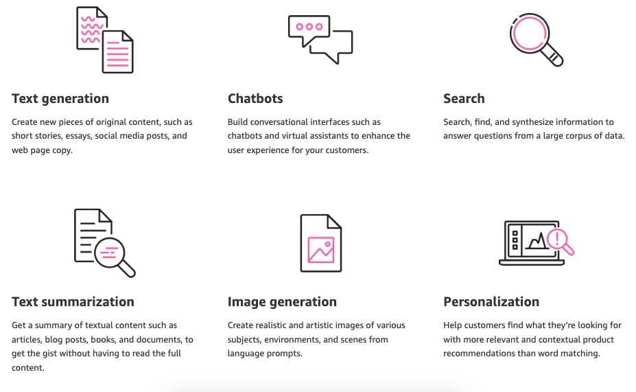 Bedrock to zestaw narzędzi opartych na sztucznej inteligencji, które mają pomóc klientom prowadzącym swoją działalność na serwerach danych Amazon, m.in. w budowaniu chatbotów, generowaniu tekstu czy tworzeniu obrazów.