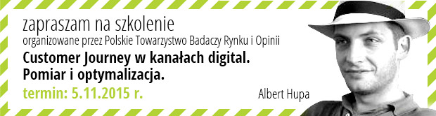 Autor prowadzi szkolenie z zakresu Customer Journey w ramach PTBRiO. Podczas szkolenia omawiane będą m.in. tradycyjne metody pomiaru Customer Journey, badania UX, źródła danych pasywnych, tworzenie funneli digitalowych czy możłiwe touchpointy kanałów digitalowych: WWW, social media i mobile. Więcej o szkoleniu.