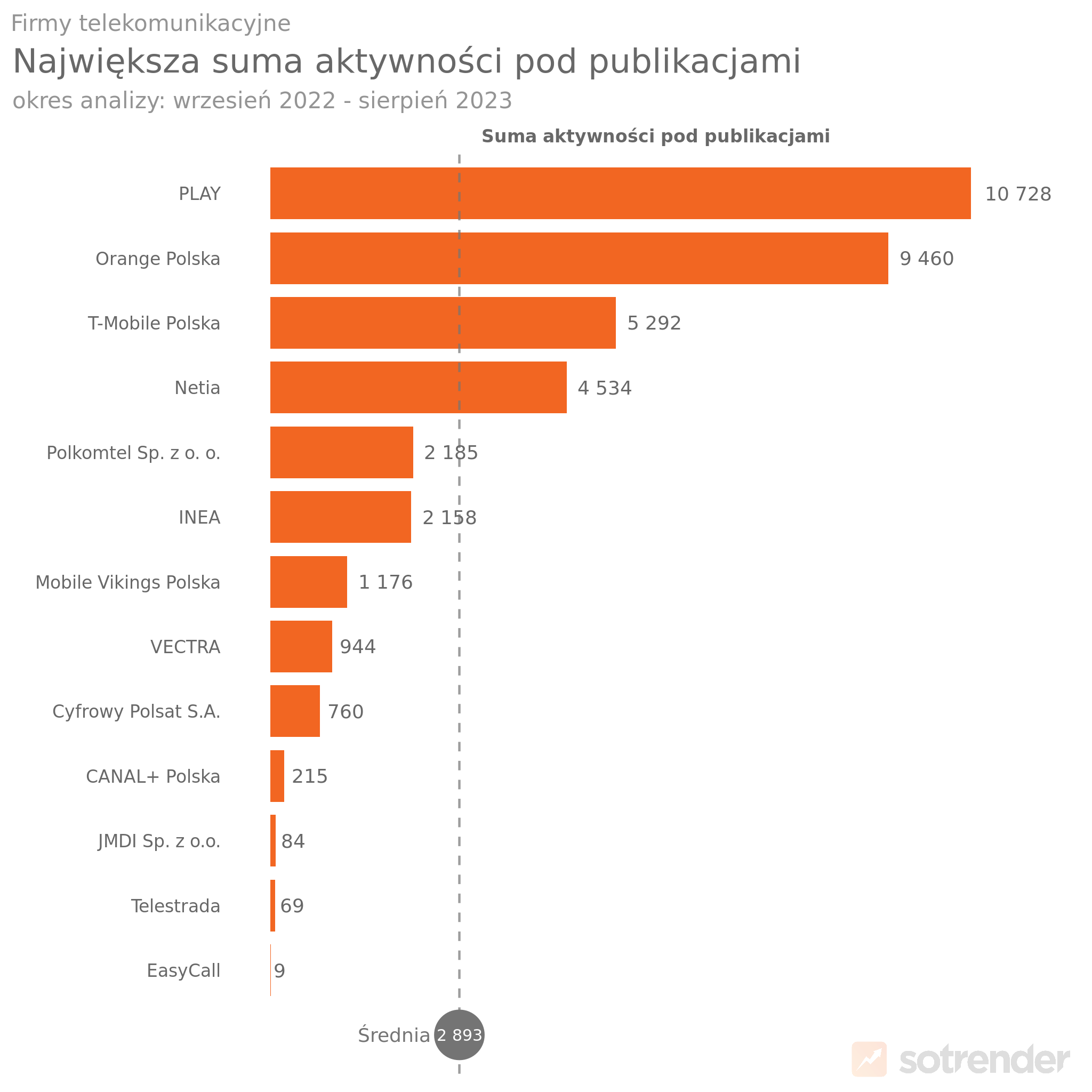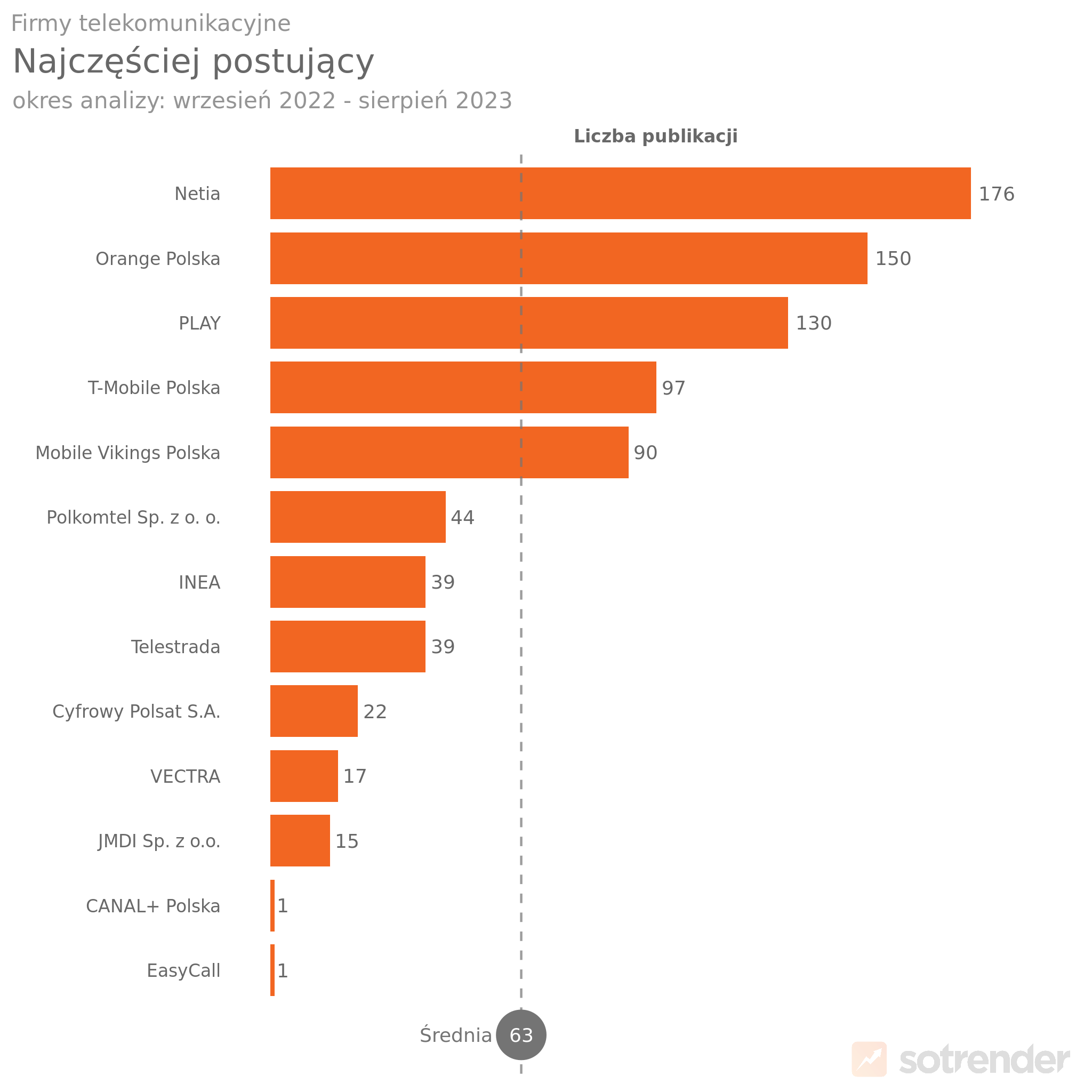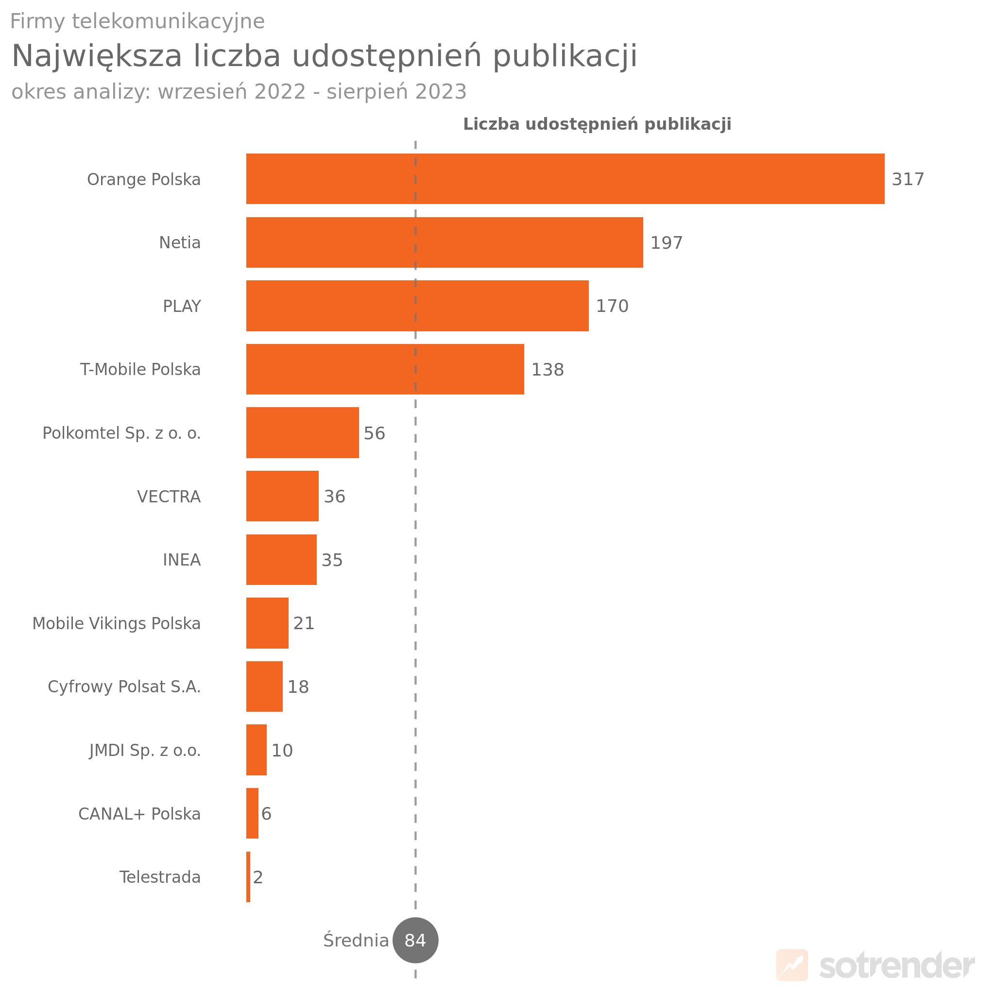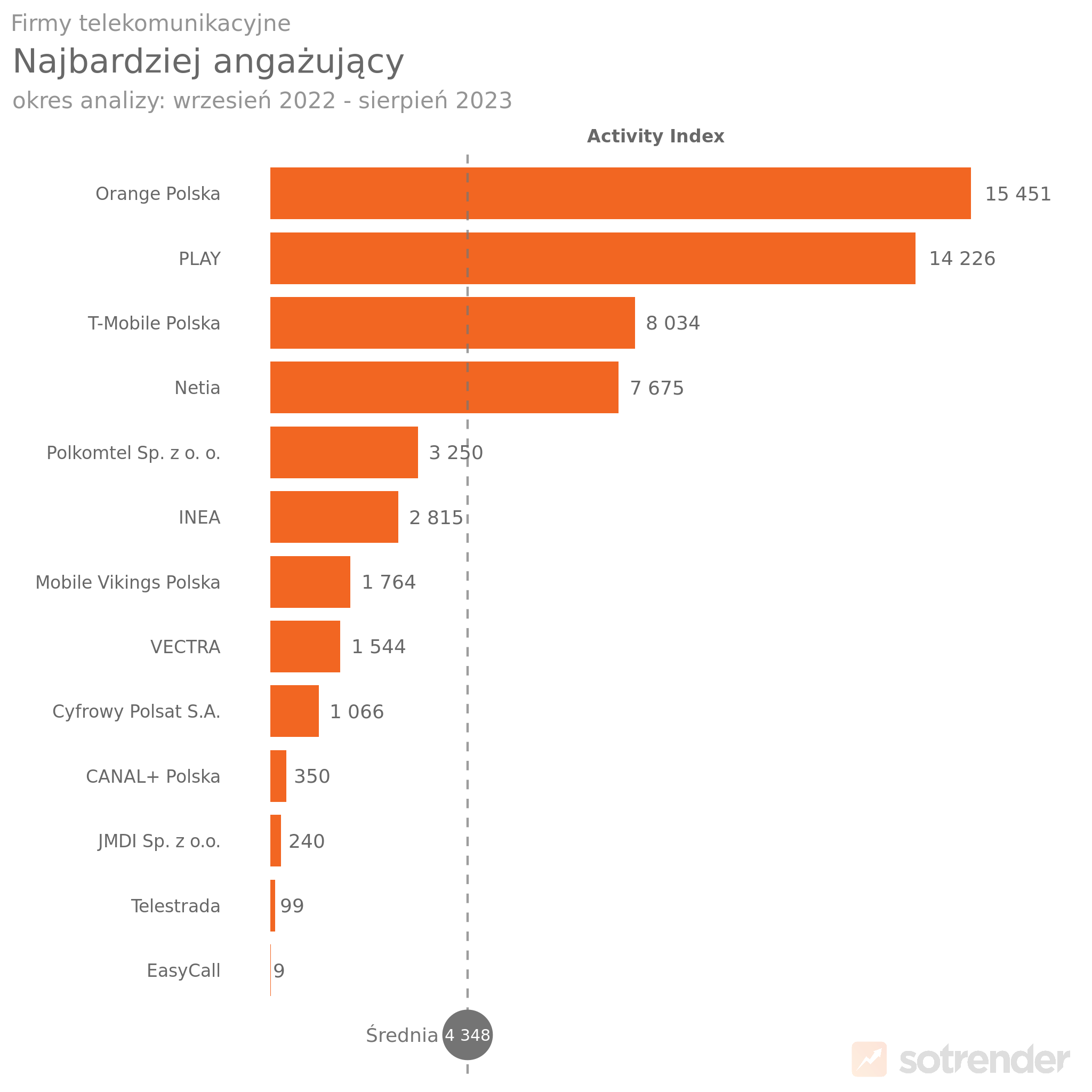 Sotrender przeanalizował działania 18 największych firm telekomunikacyjnych w Polsce* w ciągu ostatnich 12 miesięcy (wrzesień 2022 – sierpień 2023).