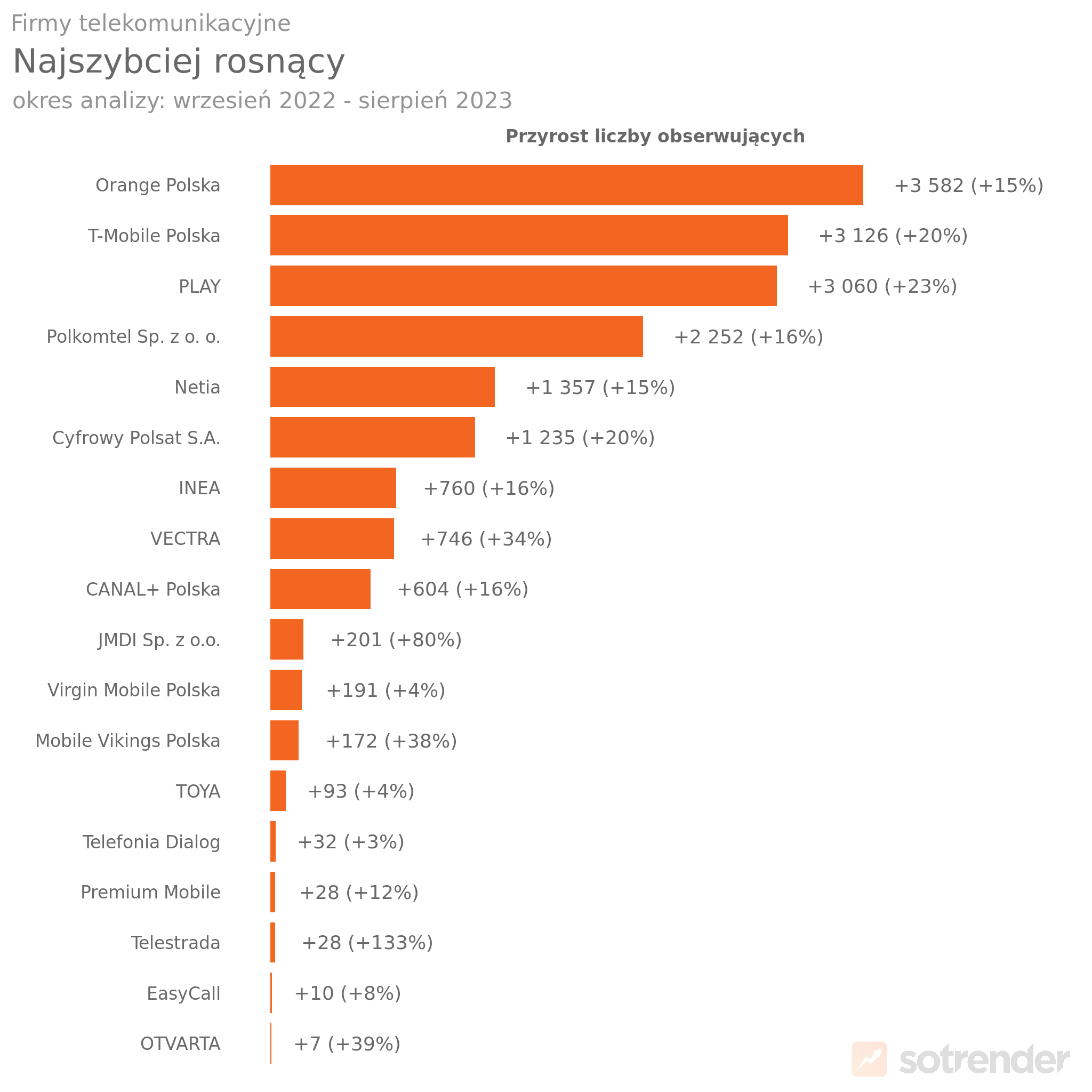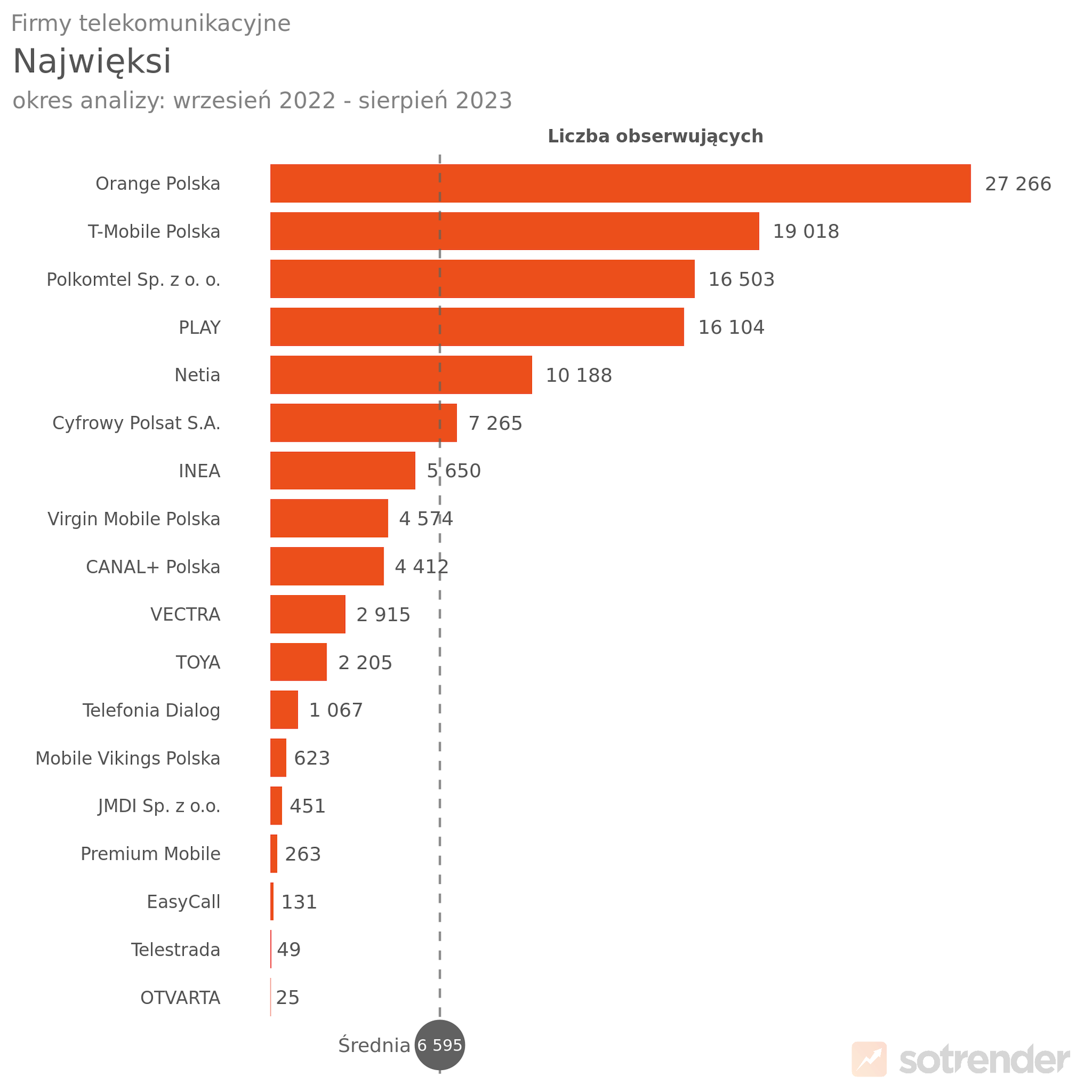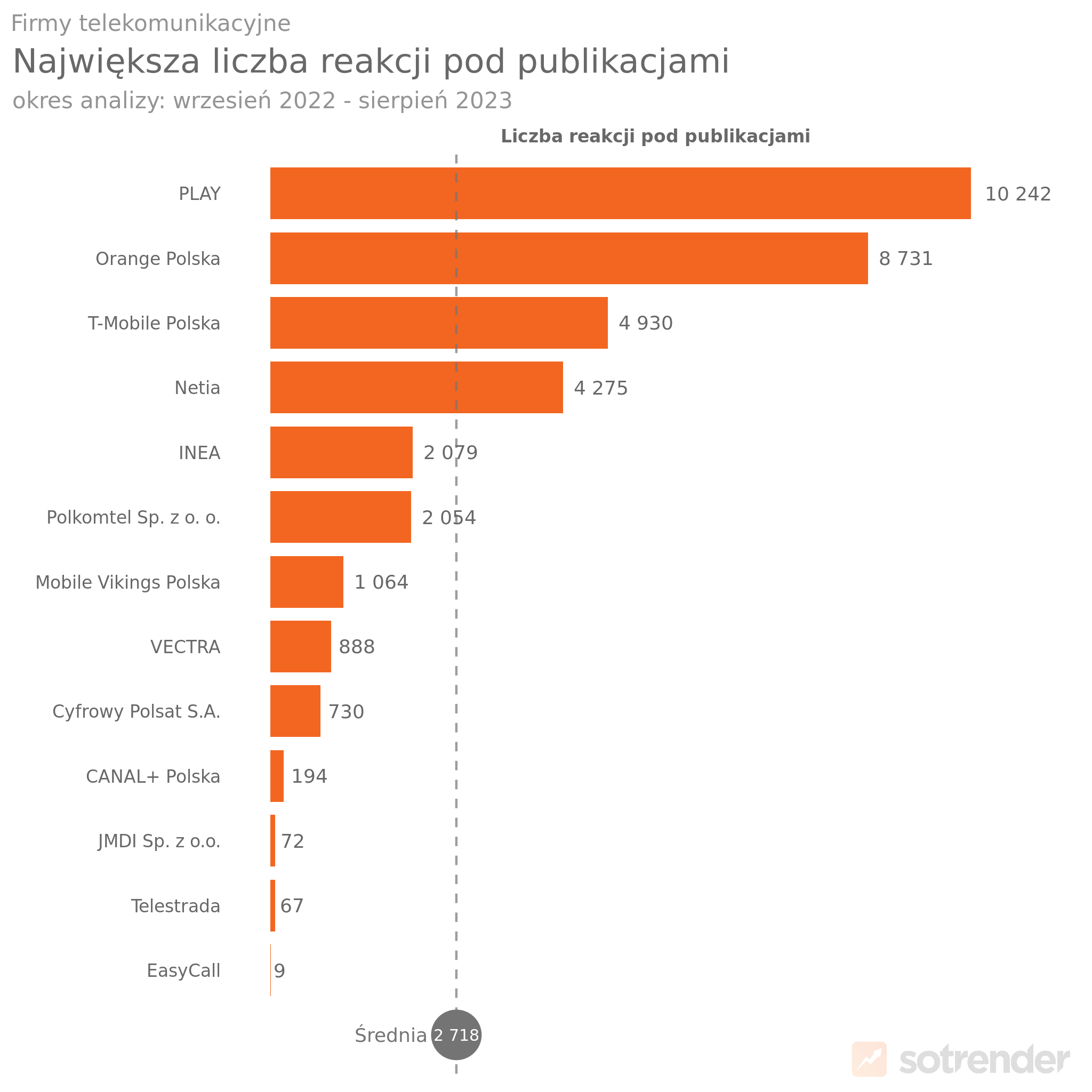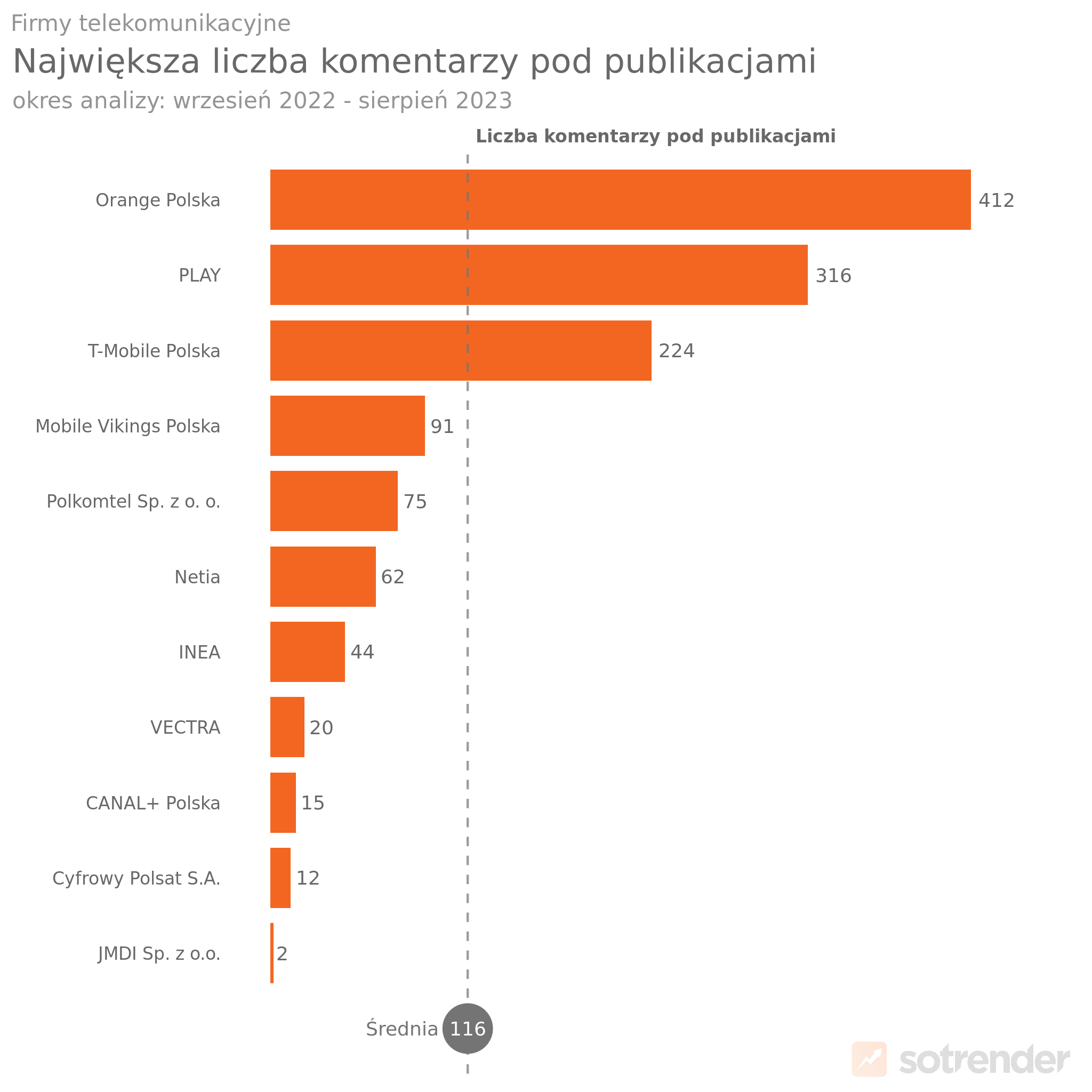 Sotrender przeanalizował działania 18 największych firm telekomunikacyjnych w Polsce* w ciągu ostatnich 12 miesięcy (wrzesień 2022 – sierpień 2023).