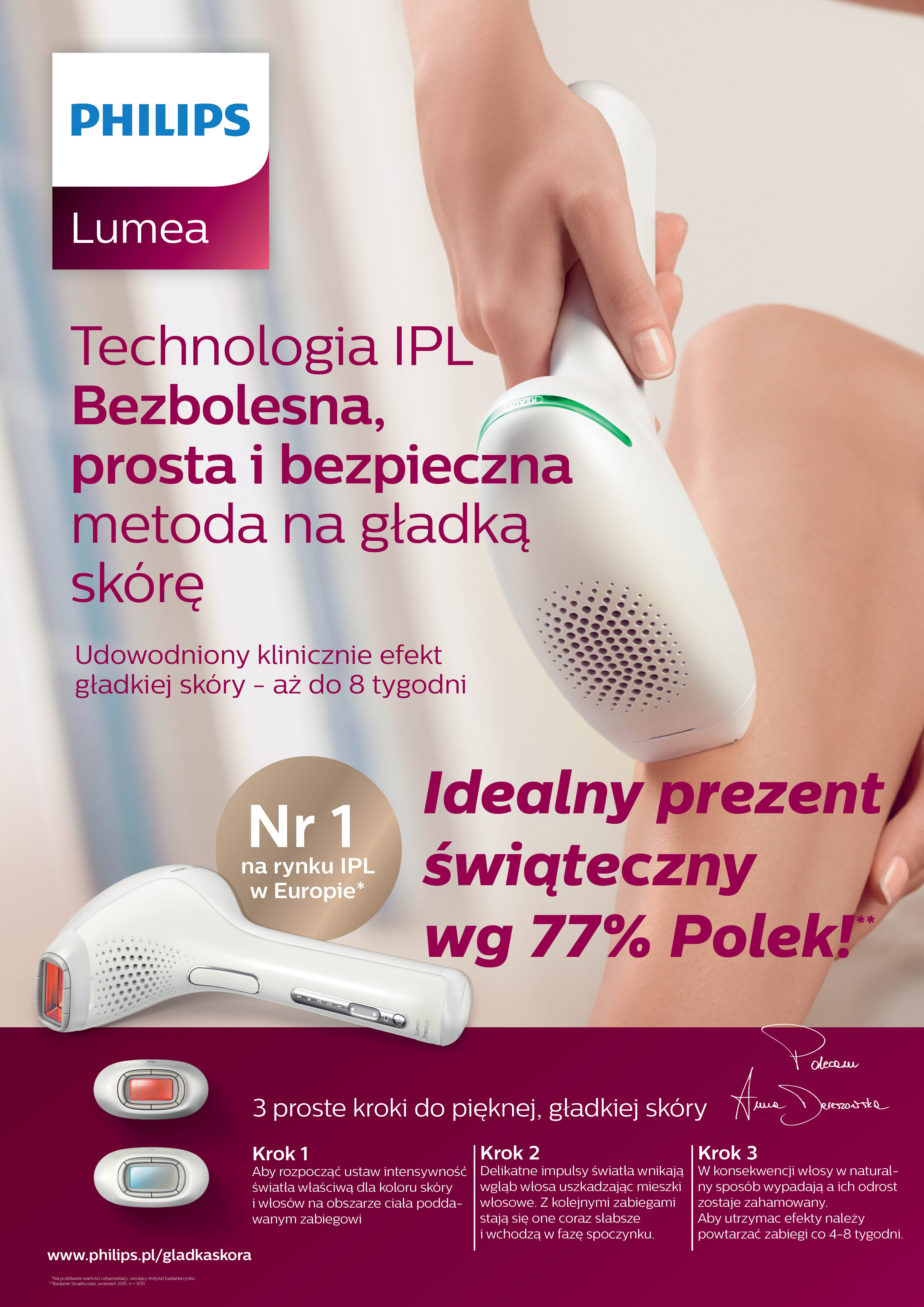 Wystartowała nowa odsłona kampanii technologii depilacji Philips Lumea. Urządzenie Philips Lumea działa na zasadzie intensywnego światła pulsacyjnego, które kierowane jest do cebulek włosów. W rezultacie włosy w naturalny sposób wypadają, a proces ich odrastania zostaje zahamowany. Regularne powtarzanie tego bezbolesnego zabiegu gwarantuje, że skóra pozostanie gładka każdego dnia, aż do 8 tygodni.