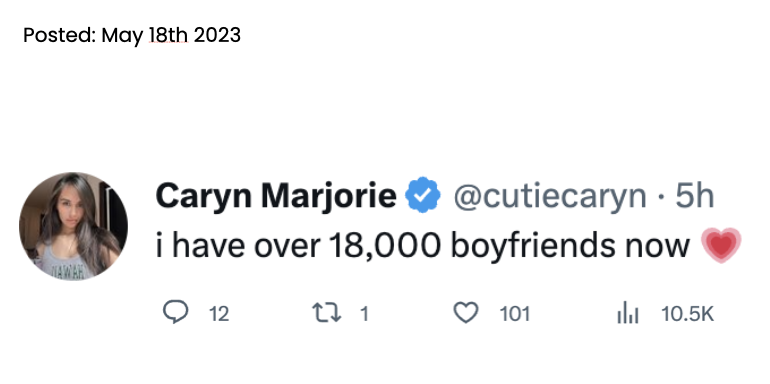 Uważam także, że w drugim półroczu pojawi się dużo awatarów związanych z celebrytami. Trochę już to obserwujemy, np. w projekcie https://caryn.ai/, gdzie pewna kobieta stworzyła swój awatar w internecie i jeżeli ktoś chce z nią porozmawiać to za każdą minutę takiej konwersacji musi zapłacić, więc model biznesowy jest genialny. Aczkolwiek pojawia się tu wątek etyczny, bo influencerka reklamuje to jako swoją kopię, która może być czyjąś wirtualną dziewczyną. Po kilku tygodniach od uruchomienia projektu, autorka chwaliła się na swoim Twitterze, że ma już 18 tysięcy wirtualnych chłopaków.