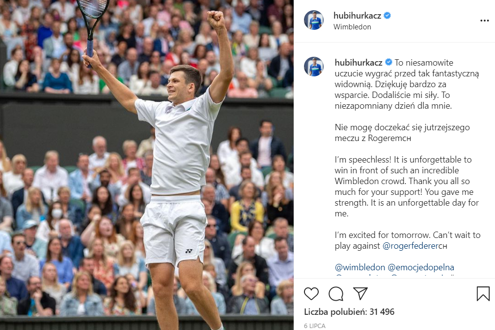 Półfinał Wimbledonu to zdecydowanie największy sukces w dotychczasowej karierze Huberta Hurkacza. Nasz zawodnik od dłuższego czasu udowadnia, że znajduje się w gronie najlepszych tenisistów. Jego obecna pozycja w rankingu ATP i wyniki, jakie osiąga na przestrzeni całego sezonu automatycznie przekładają się na większe zainteresowanie marketerów.