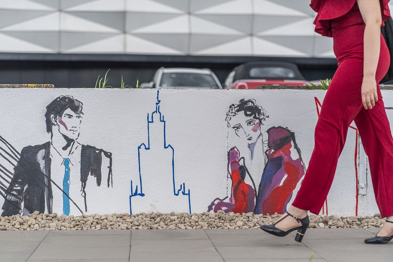 Mural wzdłuż ścieżki rowerowej to nie byle jakie graffiti. Dom Mody Klif, który od początku swojego istnienia intensywnie wspiera artystów, duży nacisk stawia na wyczucie smaku, estetykę i jakość. Do współpracy przy muralu zaprosił więc znaną w świecie mody ilustratorkę Annję Matuszewską, absolwentkę ASP w Gdańsku i Łodzi oraz studiów kuratorskich w zakresie sztuki współczesnej na UJ w Krakowie.