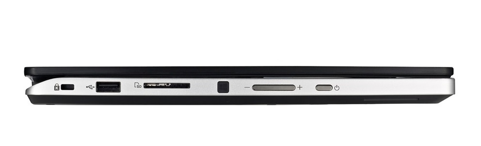 Po bokach obudowy umiejscowiono porty i przyciski, wśród których znajdziemy, po lewej stronie, gniazdo USB 2.0, slot na karty SD/SDHC, regulator głośności, a także przycisk Windowsa oraz zasilania. Tak umieszczone przyciski są szczególnie przydatne podczas korzystania z urządzenia w trybie tabletu. Z prawej strony znajdują się dwa wejścia USB 3.0, wielofunkcyjne gniazdo audio 3.5 mm, port HDMI oraz gniazdo zasilania. Choć w tym modelu ASUS nie zamontował złącza Ethernet, to dzięki szybkiej karcie WiFi 802.11ac możemy podłączyć się do sieci w dowolnym miejscu. W obudowie wbudowana jest również kamera HD oraz mikrofon, oba umiejscowione nad ekranem. Uzyskana jakość obrazu i dźwięku pozwala na swobodne przeprowadzenie rozmowy czy wideokonferencji.