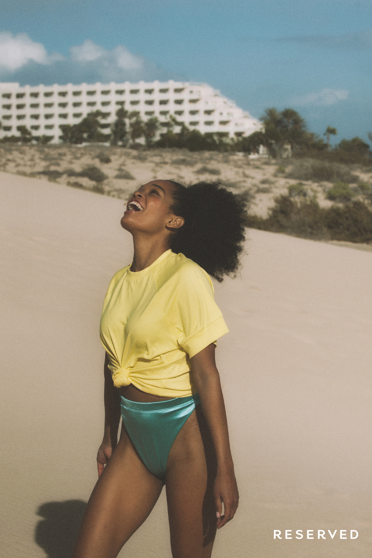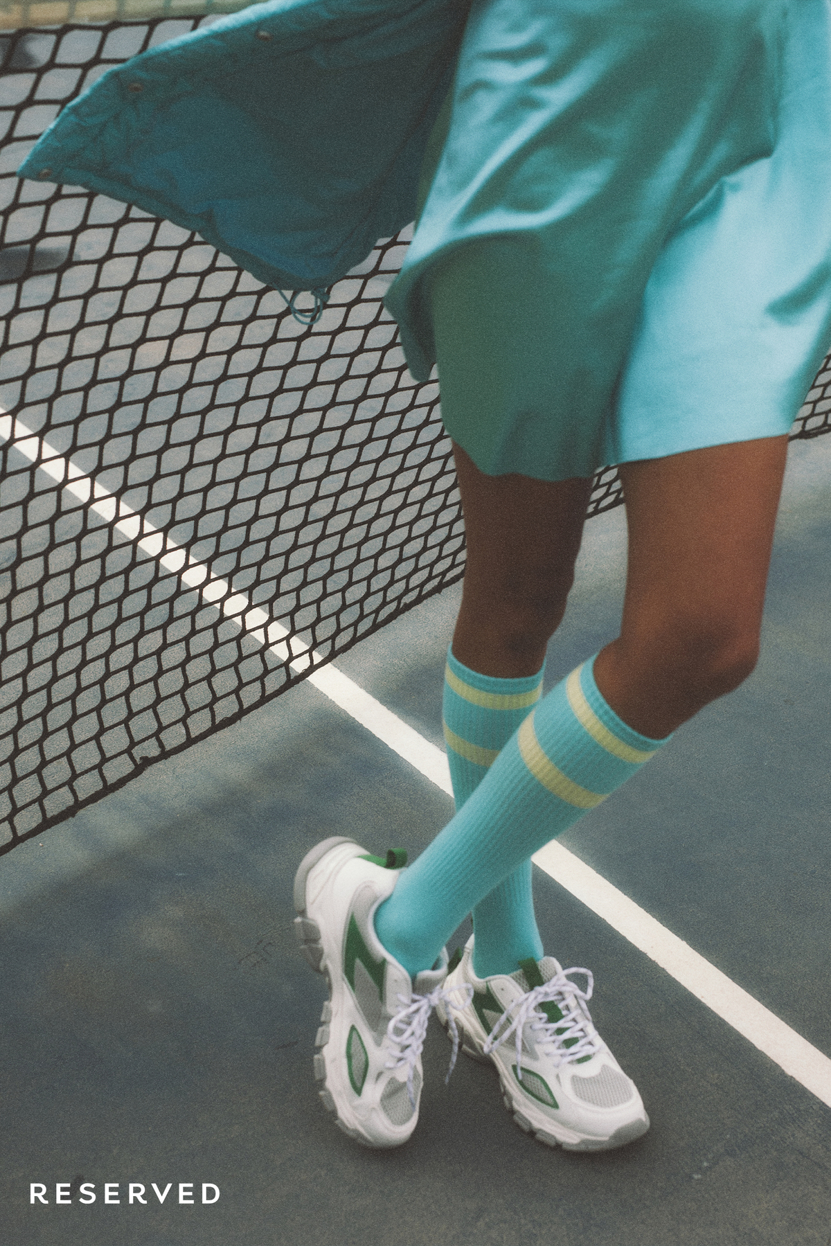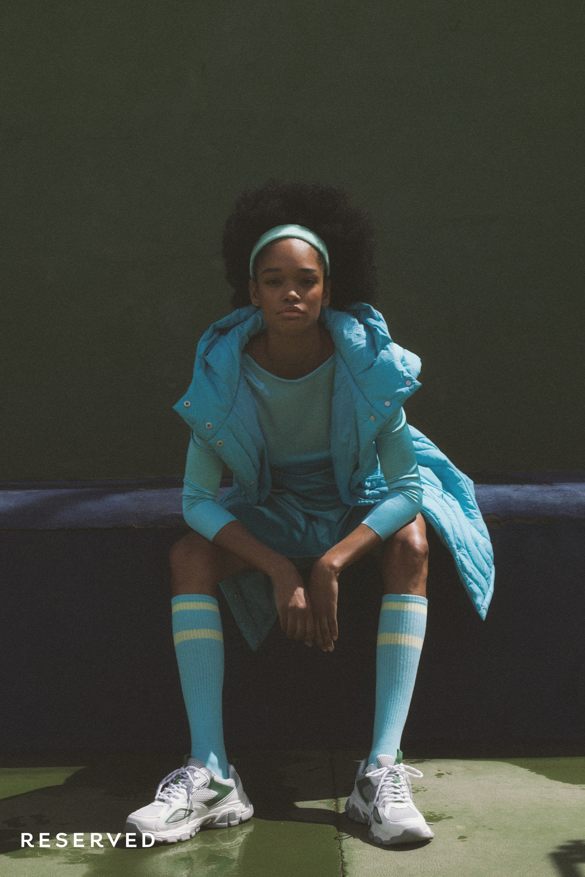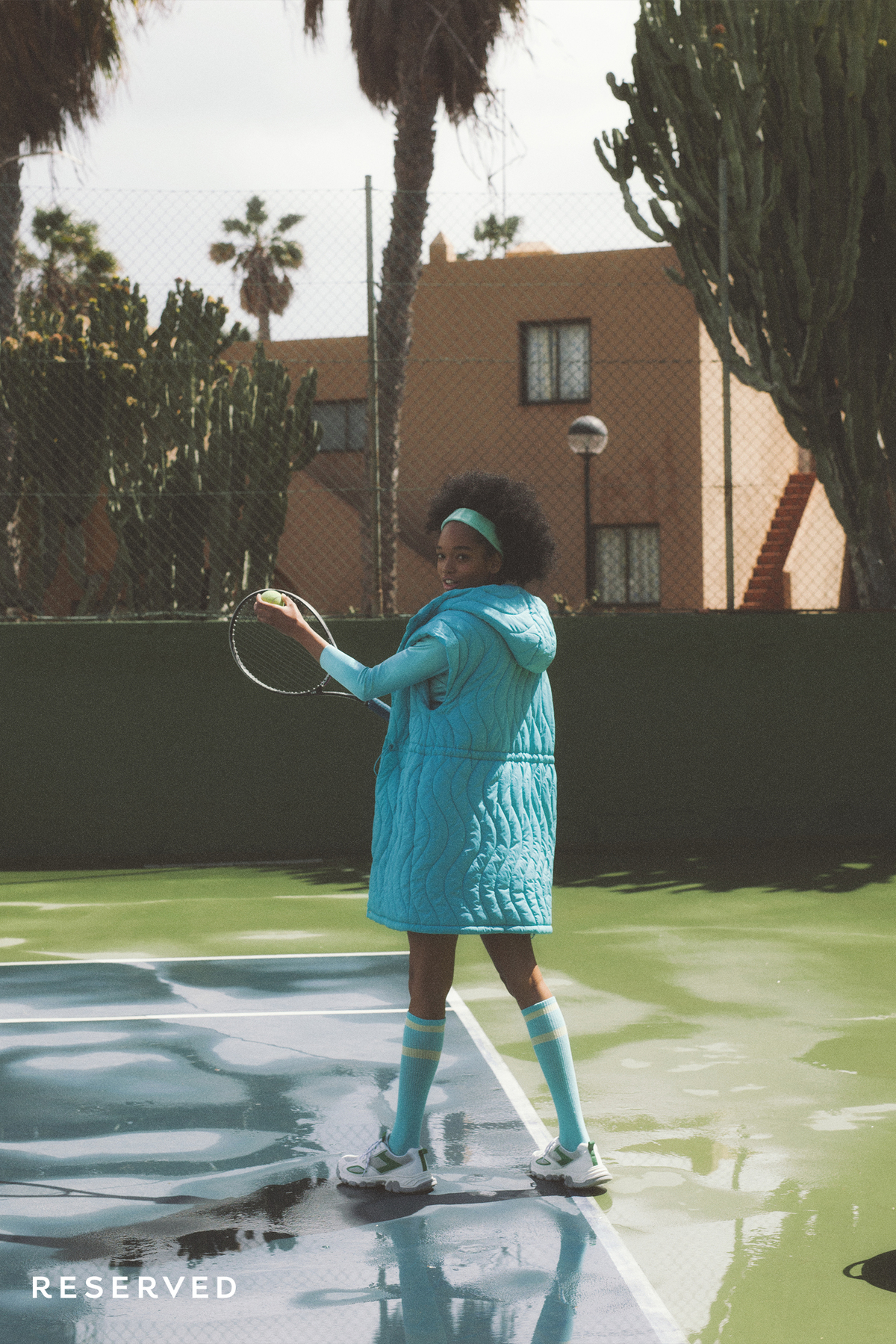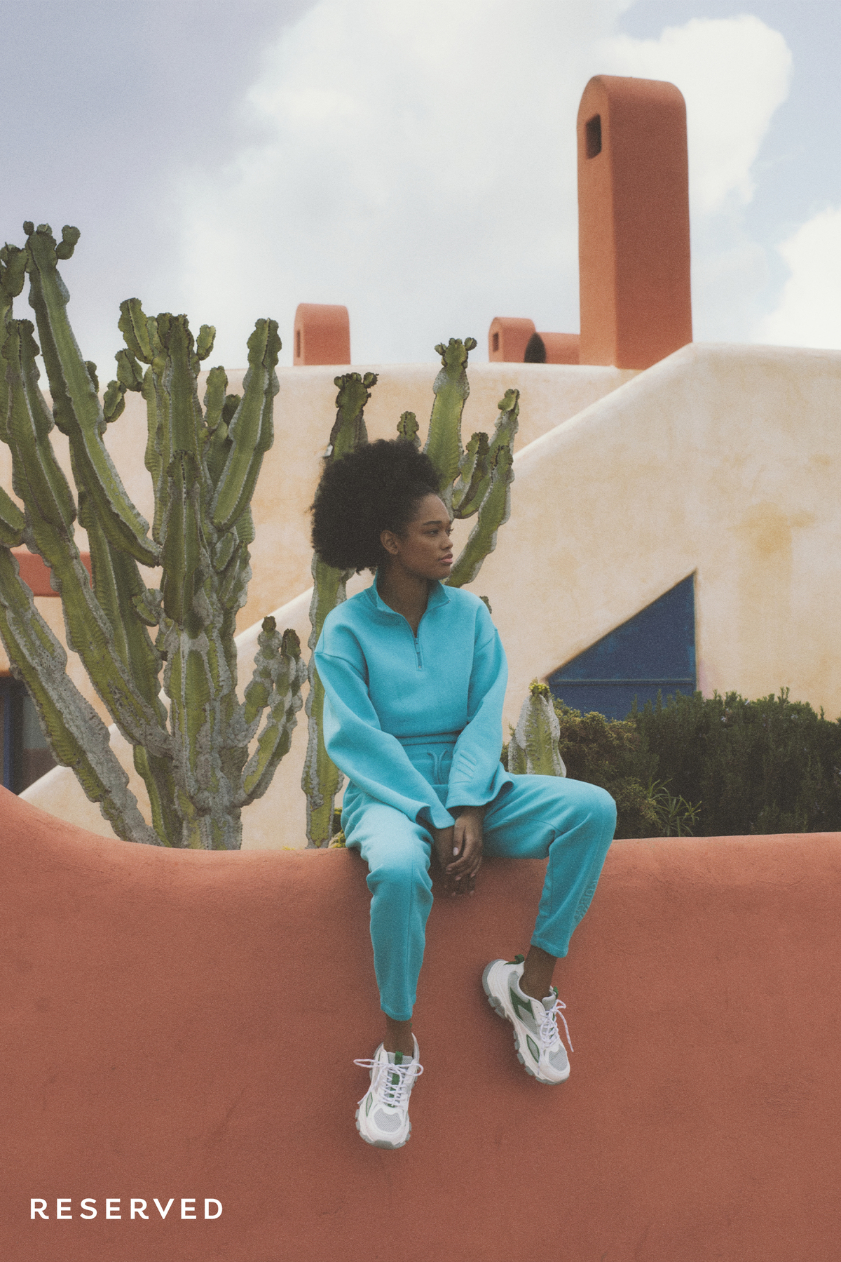 Ubrania z kolekcji Reserved Athleisure spełniają założenia #EcoAware, uszyte są głównie z bawełny organicznej oraz recyklingowanego poliestru. Bawełna organiczna wywiera znacznie mniejszy wpływ na środowisko niż bawełna konwencjonalna. Uprawiana jest w sposób, który pomaga zachować żyzność gleby i chronić jej bioróżnorodność. Do jej produkcji nie stosuje się nasion modyfikowanych genetycznie, a zbiór plonów odbywa się zgodnie z naturalnym cyklem, bez stymulacji wzrostu i sztucznego przyspieszania. Poliester z recyklingu to włókno syntetyczne produkowane z plastikowych butelek PET, a także z surowców pokonsumpcyjnych. Wyselekcjonowane tworzywa zostają wyczyszczone, rozdrobnione i ulegają przetworzeniu w nowe tkaniny. W ten sposób można uzyskać materiał równie wysokiej jakości, co w przypadku konwencjonalnego procesu wytwarzania. Dzięki recyklingowi odzyskujemy materiały, które trafiłyby na wysypisko śmieci.