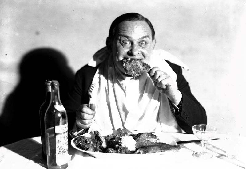 Co ciekawe, sto lat temu nie fotografowano ludzi jedzących posiłki. Była to czynność bardzo intymna, zupełnie niczym pocałunek. Niepisany etos fotografów zakładał unikanie wykonywania takich zdjęć, przez co dziś jest ich naprawdę bardzo mało. Jedno z nielicznnych, zamieszczone poniżej, prezentuje aktora Józefa Leliwę przed jednym ze spektakli teatralnych. Zdjęcie jest pozowane i wykonano je w 1930 roku.