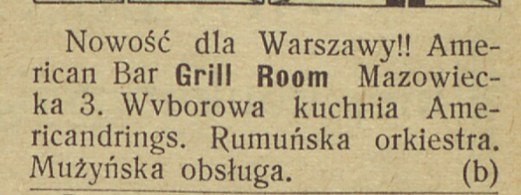 fot.: reklama lokalu w Warszawie, 1919 rok