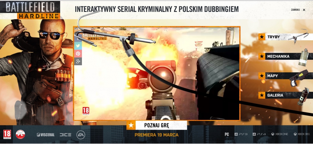 Sataku podsumowuje rich mediową produkcję, zrealizowaną dla Electronic Arts we współpracy z MediaCom. Głównym celem projektu było promowanie gry Battlefield Hardline. Kampania osiągnęła CTR na poziomie 1,41 proc.