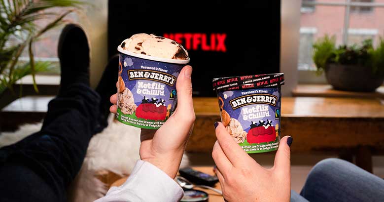 Marka kultowych lodów Ben & Jerry’s nawiązała współpracę z platformą Netflix, w efekcie czego powstały produkt o nazwie „Netflix & Chilll’d”, który jest swoistym hołdem dla kultury oglądania seriali.