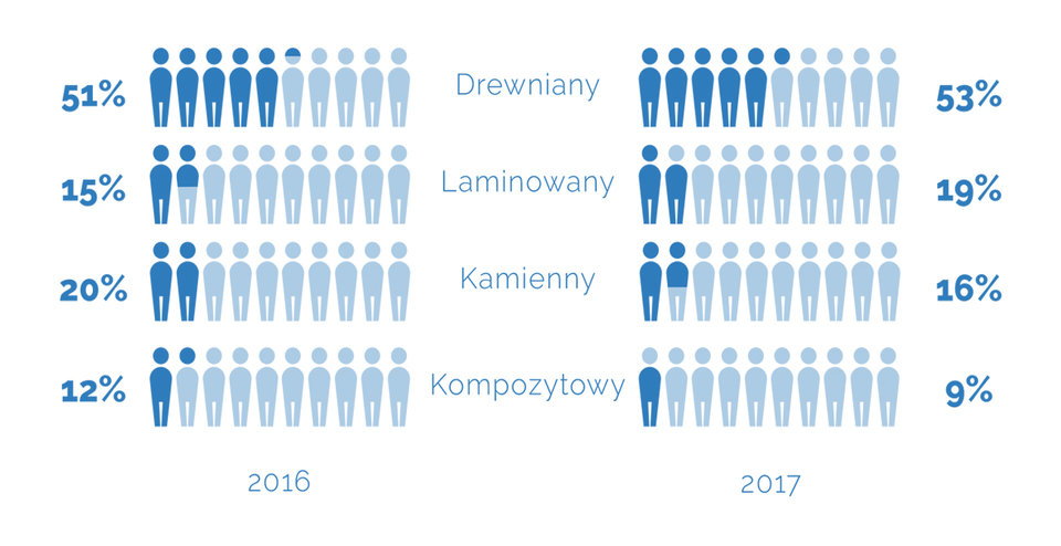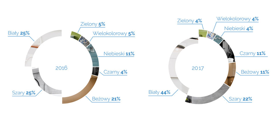 - W roku 2016 białe ściany wybrało 25% badanych, natomiast w roku bieżącym, ich popularność wzrosła aż o 19%
