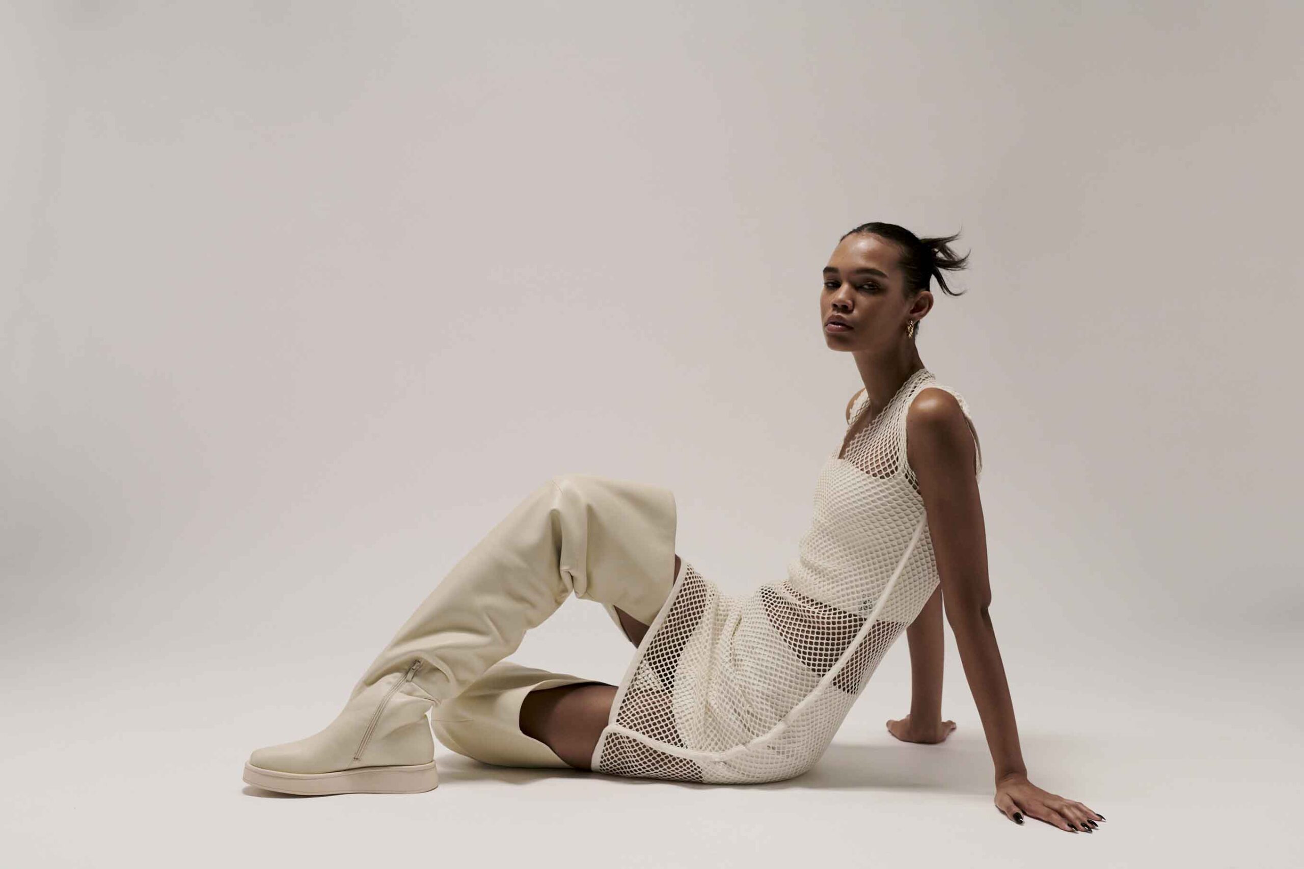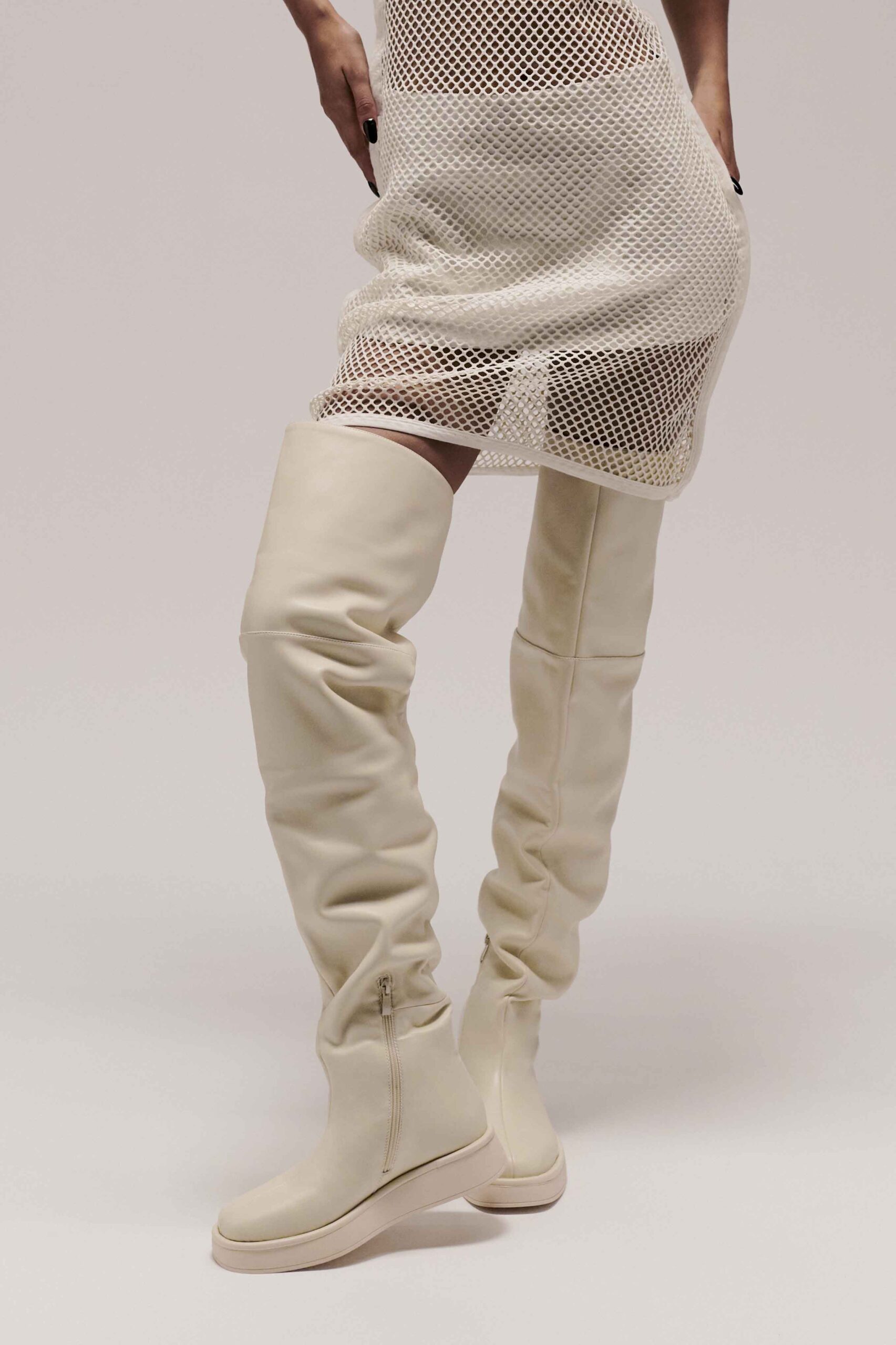 Kapsuła Big Boot Energy marki Jenny Fairy to militarne botki i ultra wysokie kozaki na koturnie w kontrastujących barwach: intensywnej czerni i delikatnym beżu. Całość została uzupełniona o przeskalowane shopperki z przeszyciami, również utrzymane w wygaszonej, jesiennej kolorystyce.