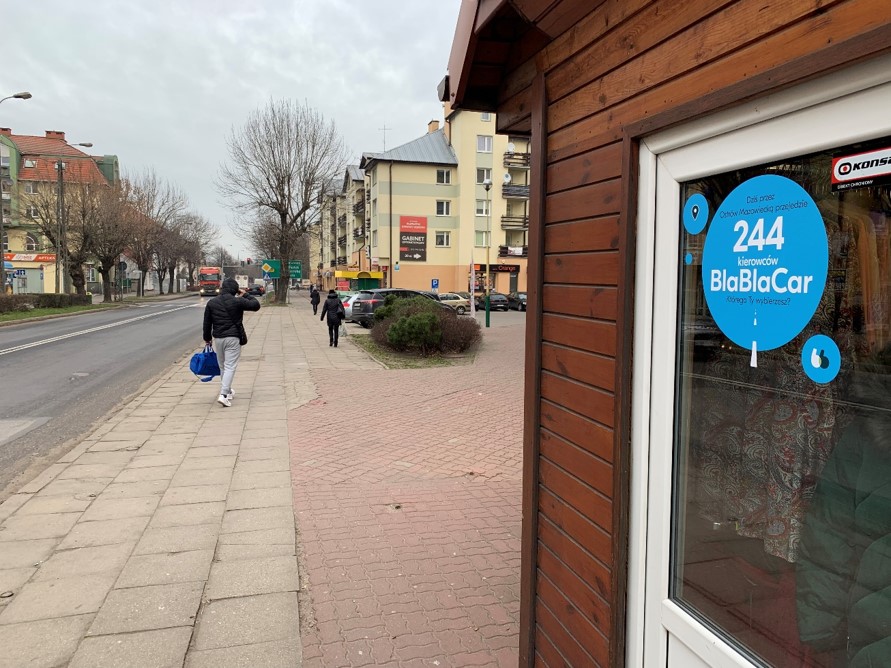 Trzecim działaniem podjętym przez serwis carpoolingowy jest nieszablonowa kampania outdoorowa przeprowadzona w kilku miastach o utrudnionej sytuacji transportowej – w Ostrowi Mazowieckiej, Kępnie i Mielcu. W Ostrowi wprowadzone zostały ograniczenia kursów przez PKS i mówi się, że miasto zostało spisane na kolejowe zapomnienie. Jest największym miastem powiatowym w województwie mazowieckim bez pociągów pasażerskich i przez najbliższe lata nie zapowiada się na żadne zmiany w tym zakresie. W powiecie kępińskim, gdzie mieszka ponad 56 tys. osób, wiele połączeń kolejowych zostało zlikwidowanych, a te istniejące są źle skomunikowane między sobą. W Mielcu mówi się o kryzysie transportu publicznego – pociągi pasażerskie nie dojeżdżają, firmy autobusowe likwidują połączenia. We wszystkich trzech miastach można w grudniu zobaczyć charakterystyczne naklejki na witrynach sklepów oraz oklejone autobusy miejskie. Prezentują one liczbę kierowców BlaBlaCar, którzy codziennie przejeżdżają przez najbliższą okolicę – i mogą zabrać pasażerów. Celem kampanii jest pokazanie mieszkańcom, jak łatwo, szybko i wygodnie mogą znaleźć transport jeszcze bliżej siebie. Podobnych miast, jak Ostrów Mazowiecka, Kępno czy Mielec jest w Polsce bardzo wiele. Dla każdego z nich wspólne przejazdy mogą być realnym rozwiązaniem problemu wykluczenia transportowego.