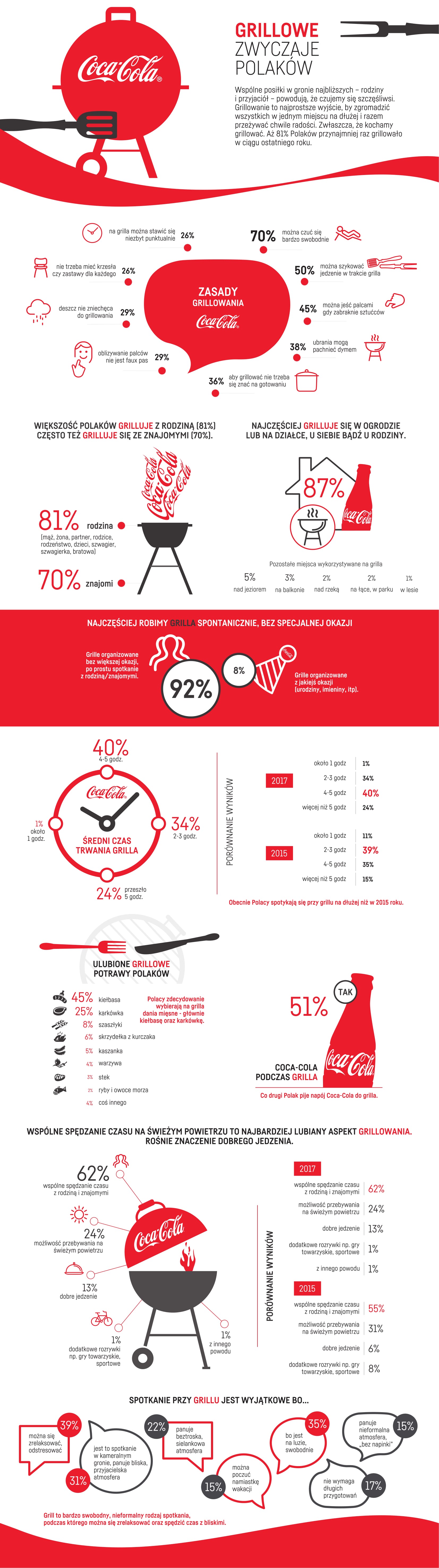 Jak wynika z badań przeprowadzonych na zlecenie Coca-Cola najbardziej w spotkaniach na świeżym powietrzu cenimy możliwość przebywania ze swoimi bliskimi w rodzinnej, luźnej atmosferze. Z pozoru zwykły dzień, zwykły obiad albo przekąska może być świetną okazją do umacniania więzi, poczucia bycia razem, rozmowy czy zabawy. Wspólne posiłki w gronie najbliższych – rodziny i przyjaciół – powodują, że czujemy się szczęśliwsi. Grillowanie to najprostsze wyjście, by zgromadzić całą rodzinę na dłużej i wspólnie przeżywać chwile radości. Dlatego Coca-Cola zachęca do tego by wykorzystać słoneczne dni i jak najczęściej spotykać się razem na świeżym powietrzu przy ulubionych potrawach. Z Coca-Cola każdy grill się uda!