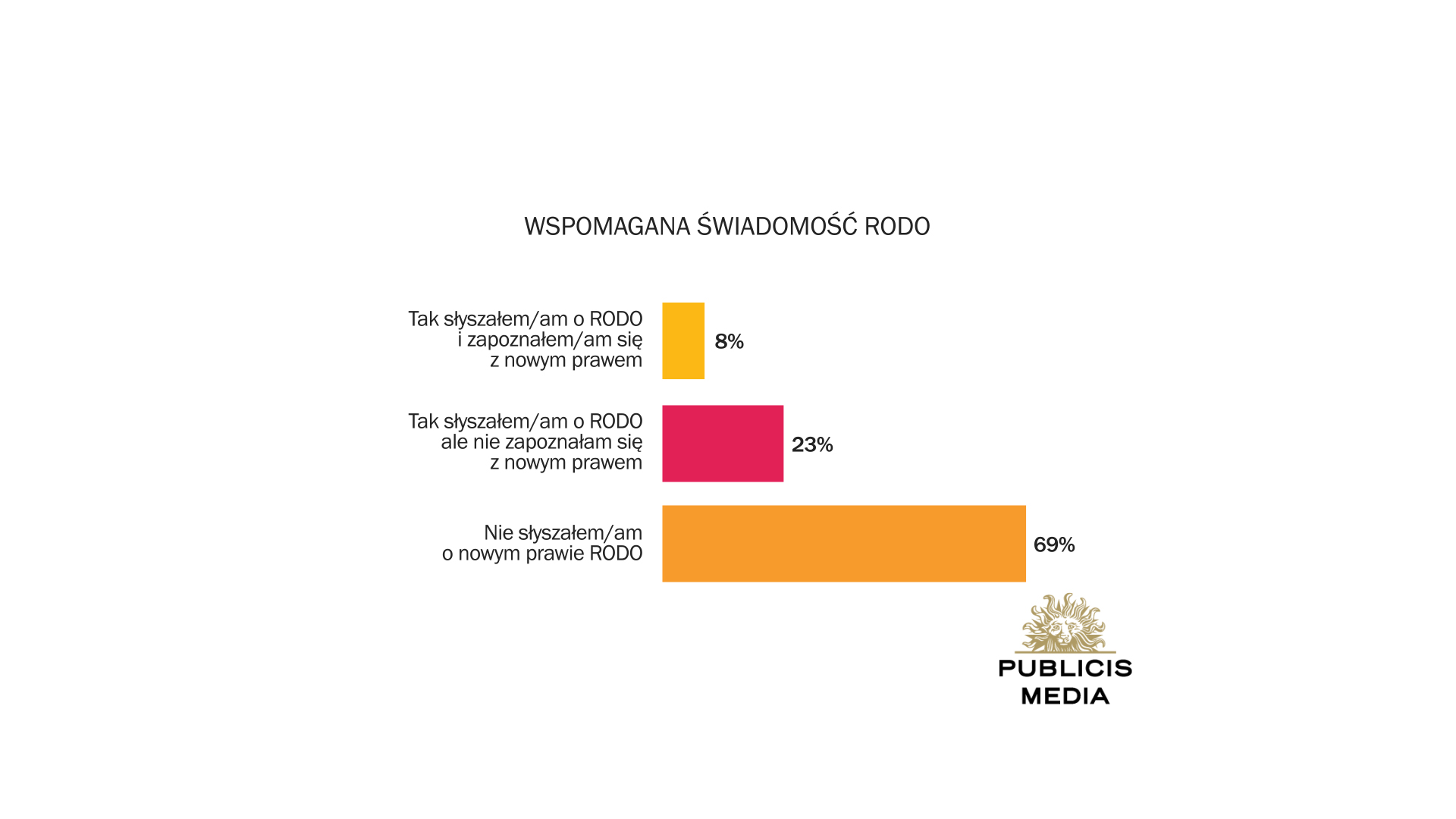 Tylko 8 proc. respondentów w badaniu przeprowadzonym na zlecenie przez Publicis Media zadeklarowało, że słyszało i zapoznało się z nowym rozporządzeniem unijnym o ochronie danych osobowych RODO, które w Polsce zacznie obowiązywać 25 maja br. 23 proc. badanych stwierdziło, że wie o RODO, ale nie zapoznało się ze szczegółami nowego prawa. Blisko 70 proc. polskich internautów w ogóle nie słyszało o nowym rozporządzeniu.