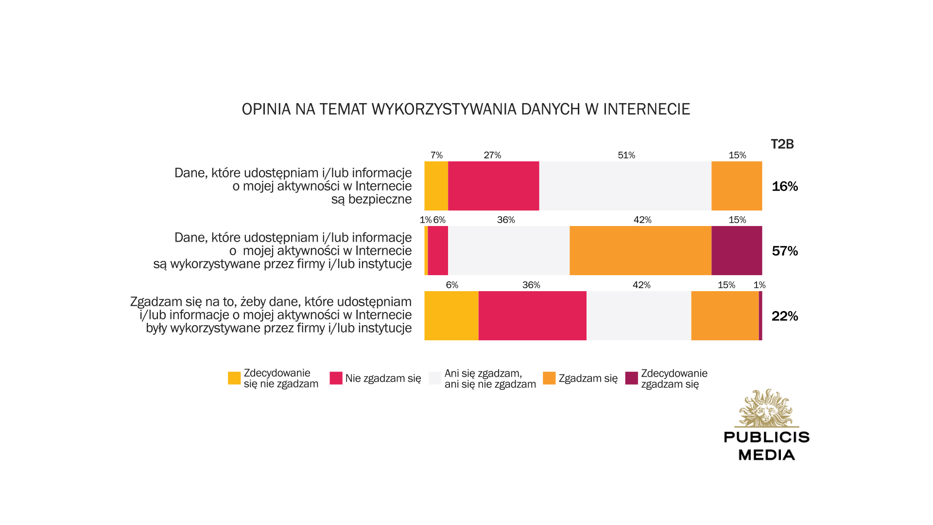 Wśród ogółu respondentów tylko 16 proc. zgadza się z tym, że ich dane w internecie są bezpieczne. Prawie 60% ma świadomość, że informacje pozostawiane w internecie mogą być w jakiś sposób wykorzystywane, a 22% deklaruje, że wyraża zgodę na ich wykorzystywanie.