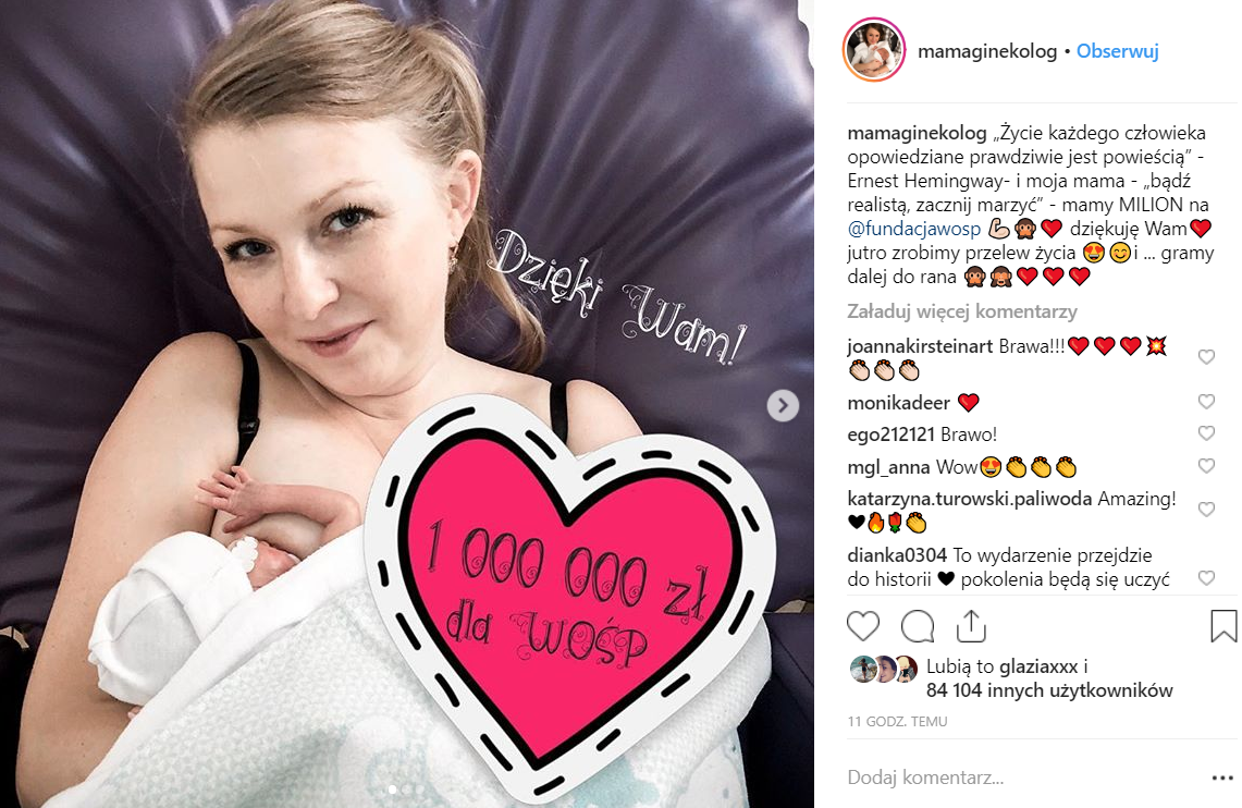 Ebooki weszły do sprzedaży 11 stycznia br. Wieczorem 13 stycznia Mamaginekolog na swoim Instagramie zamieściła wpis, w którym poinformowała, że udało się już zebrać 1 milion złotych ze sprzedaży ebooków! Cała ta kwota trafi na konto WOŚP.