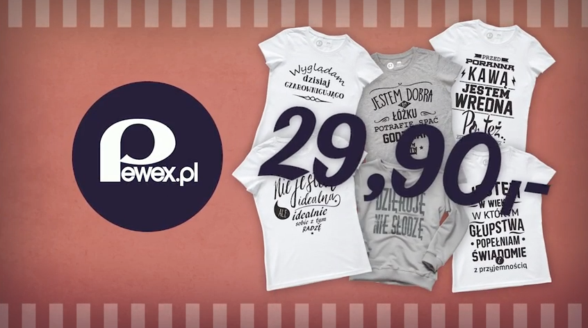 Spoty radiowe, materiały filmowe i kreacje internetowe zostały przygotowane przy współpracy ze Studiem PRL. Jest to kolejny projekt tej agencji wykonany dla sklepu Pewex.pl. Klipy i spoty mają zabawny charakter, nawiązujący bezpośrednio do tego, co można przeczytać na ubraniach i tekstyliach z najnowszej kolekcji sklepu, a hasłem przewodnim każdego z nich jest slogan „Bo jak się czuję, tak się noszę”. Natomiast hasłem spinającym tą, jak i wszystkie poprzednie kampanie, jest czytane przez legendarnego polskiego lektora Mirosława Uttę hasło „Handel obwoźny w internetach z dostawą prosto do domu”.