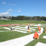 Malowanie tak gigantycznych rozmiarów logotypu na powierzchni poziomej to duże wyzwanie, bo nie masz szans na obejrzenie postępów w pracy i kontrolowania jej z daleka, tak jak w przypadku pracy na powierzchniach pionowych. Dopiero na koniec dostajesz zdjęcia z helikoptera i widzisz, czy wszystko jest perfekcyjnie – mówi o projekcie Piotr Ruszkowski, Creative Director Good Looking Studio, odpowiedzialny za nadzór nad projektem. O samym procesie tworzenia nietypowego muralu na trawie mówi: Matematyka nie kłamie, a malowanie tego rozmiaru logotypu to praca matematyczno-techniczna. Zużyliśmy 7,5 tony farby na namalowanie logo w tym roku. Robimy to farbami wodnymi, które posiadają certyfikat nieszkodliwości dla środowiska. Bardzo dobra organizacja pracy pozwala nam zrobić taki logotyp ekipa sześciu osób w sześć dni.
