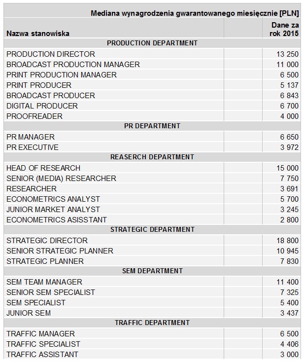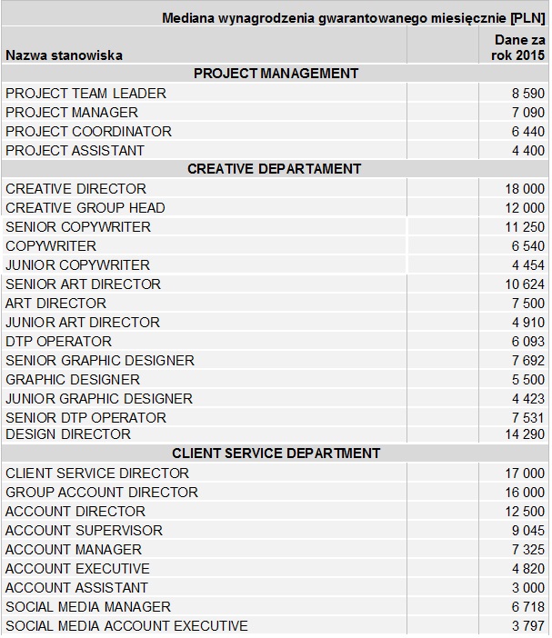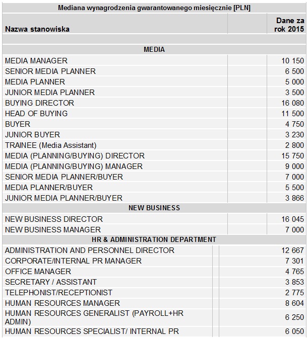 Analizę wynagrodzeń oraz stawek godzinowych pracowników agencji reklamowych, mediowych oraz eventowych, przeprowadziła firma IDEA! Management Consulting – we współpracy z Towers Watson Data Services.