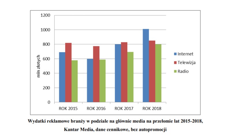 W tym samym okresie branża na kampanie reklamowe łącznie we wszystkich mediach wydała ponad 2,6 mld zł (dane cennikowe, Kantar Media). Od 2015 roku nakłady na reklamę radiową wzrosły z 578 mln zł do 801 mln zł, czyli o blisko 223 mln zł.