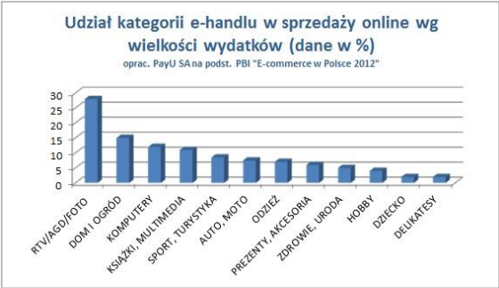W 2012 roku, według danych PBI, niemal co trzecia złotówka wydawana na zakupy internetowe w Polsce trafiała do sklepów internetowych sprzedających produkty RTV/AGD. Sprzęt elektroniczny stanowi aż 28 proc. ogólnej sprzedaży w Internecie.
